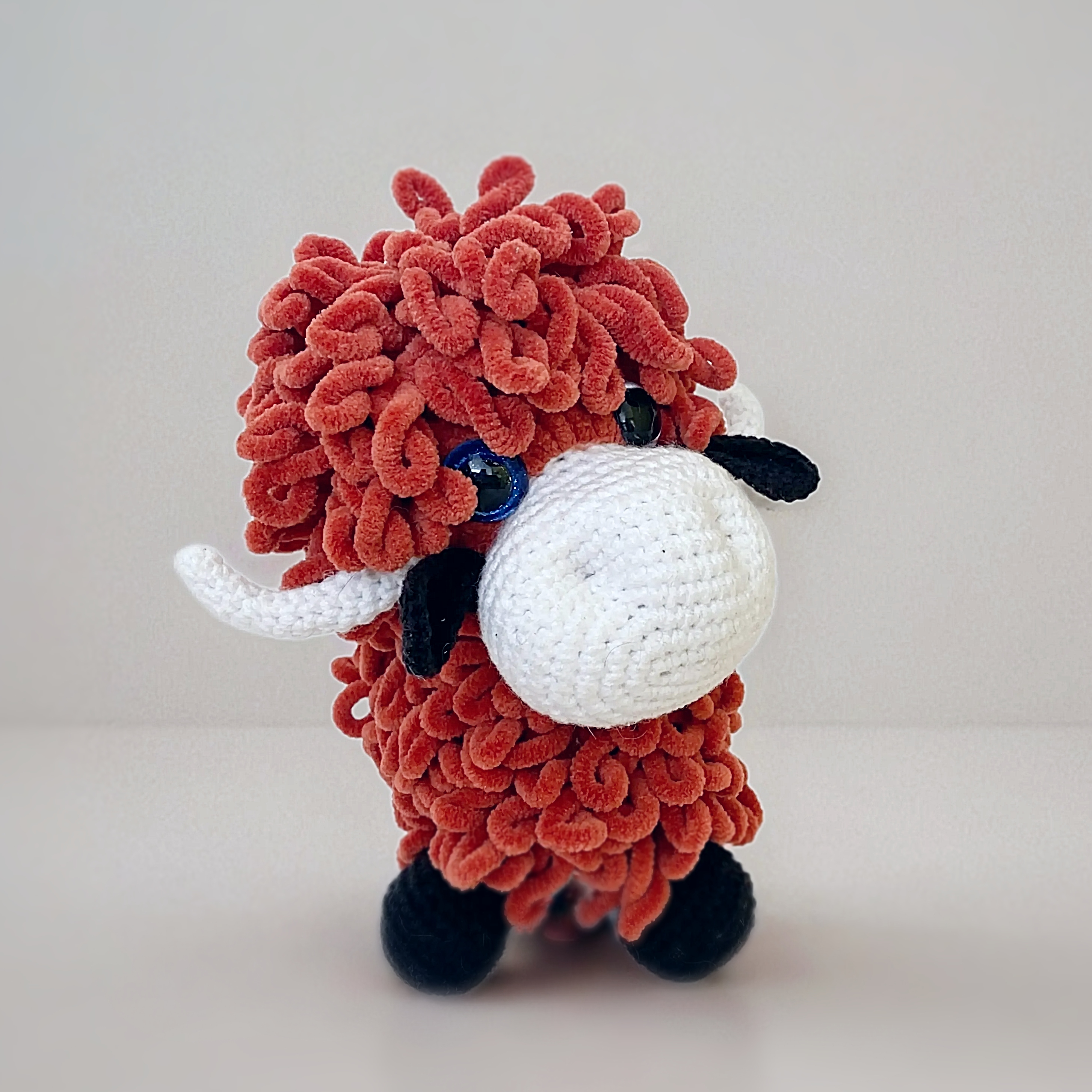 Hochlandrind. Ein Mix aus Garnen mit unterschiedlichen Texturen.