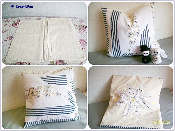 Es ist tatsächlich nur 1 Kissen, der Stern ist die Rückseite, meine allererste Applikation.