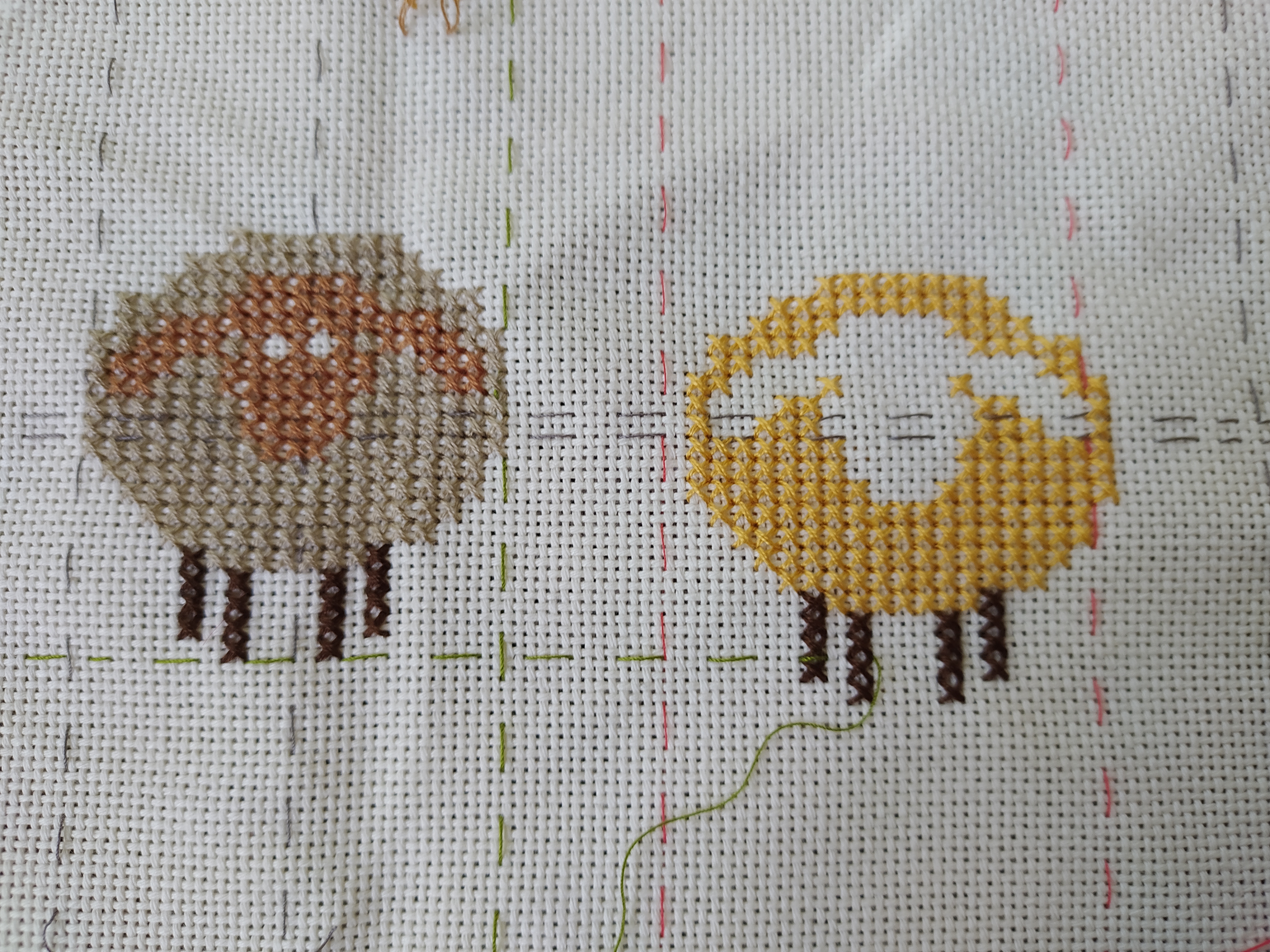 Ich bin an einem Kissenbezug. Ganz glücklich bin ich nicht, da die Aufteilung nicht nach meinen Vorstellungen passt. Nun muss ich schauen, wie ich es fertig sticke.