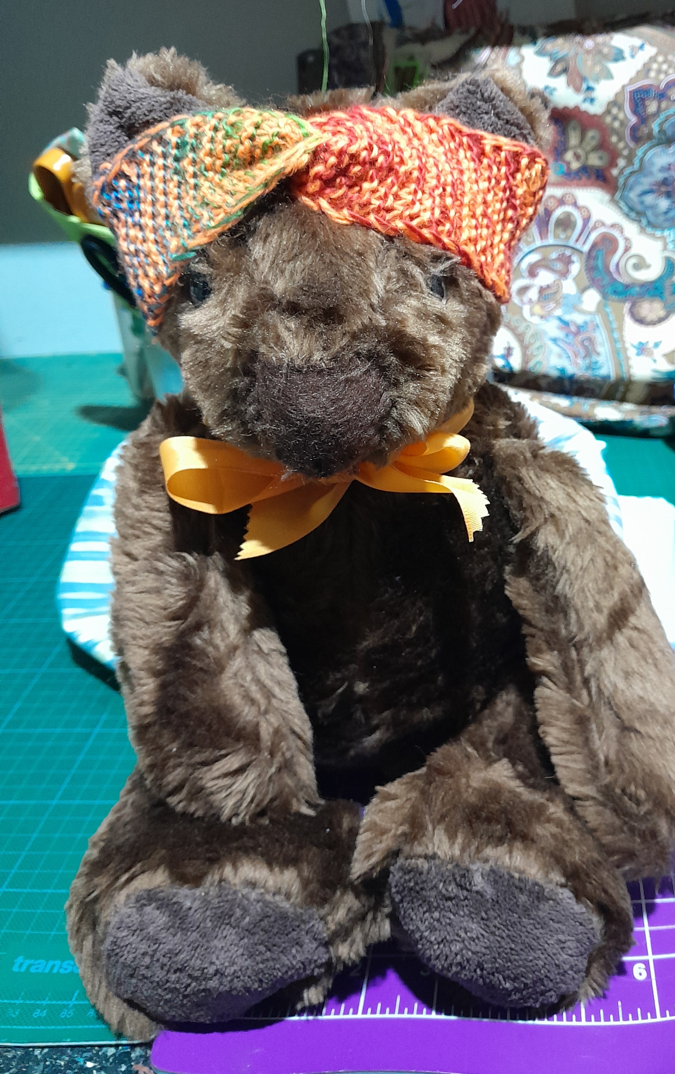konnte die Hände doch ned stillhalten, hab während des Besuches vom Enkel ein Stirnband für meinen Teddy gestrickt