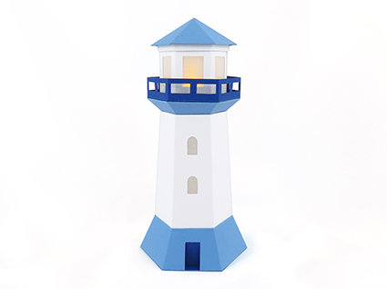 Leuchtturm ist eine dekorative Leuchte, die mit zwei LED-Teelichtkerzen beleuchtet wird.