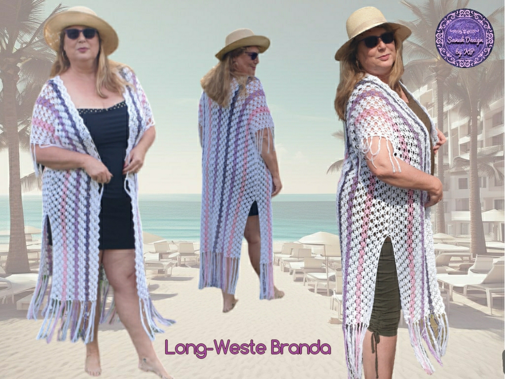 Häkelanleitung (Long-) Weste Brenda Dieses wunderschöne Sommer-Accessoire kann ich nur empfehlen. Ob am Strand oder beim Stadtbummel, du wirst dich top gestylt fühlen.