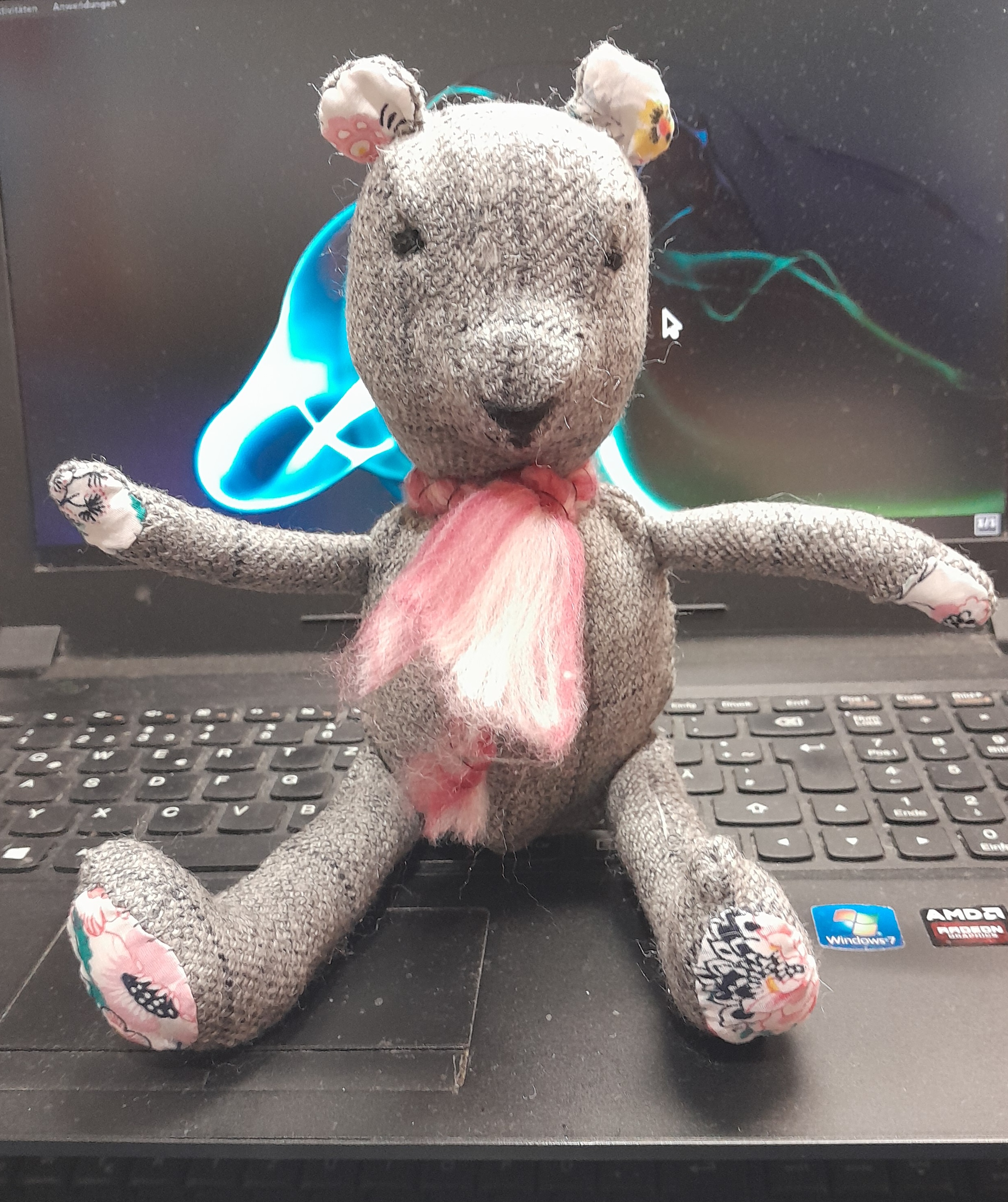 den Schnitt von dem Mäusle hab ich schon seit einigen Jahren in meinerm Musterbuch ruhen, als ich letzt meinen Schrank im Nähzimmer wieder mal ausräumte und ausgemoistet habe fiel mir auch das Musterbuch wieder in die Hände, habs mal durchgeblättert und da sah ich eben diese von mir gezeichnete Schnittmuster. Das wird Zeit das du das mal nähst, dachte ich mir und seit gestern Nachmittag hab ich mit Nadel und Sterngarn von Hand genäht. Ist schon in der Kiste für die Kt :-)