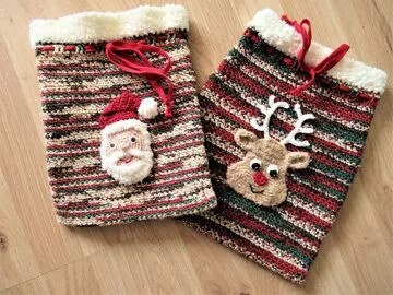 Um Nikolaus- oder Weihnachtsgeschenke einzupacken, sind diese Geschenksäckchen aus Sockenwolle ideal. Vor allem etwas unförmige Geschenke lassen sich so unkompliziert und hübsch verpacken. Und das Beste: Es entsteht kein Verpackungsmüll, denn die Säckchen können jedes Jahr wieder verwendet werden.