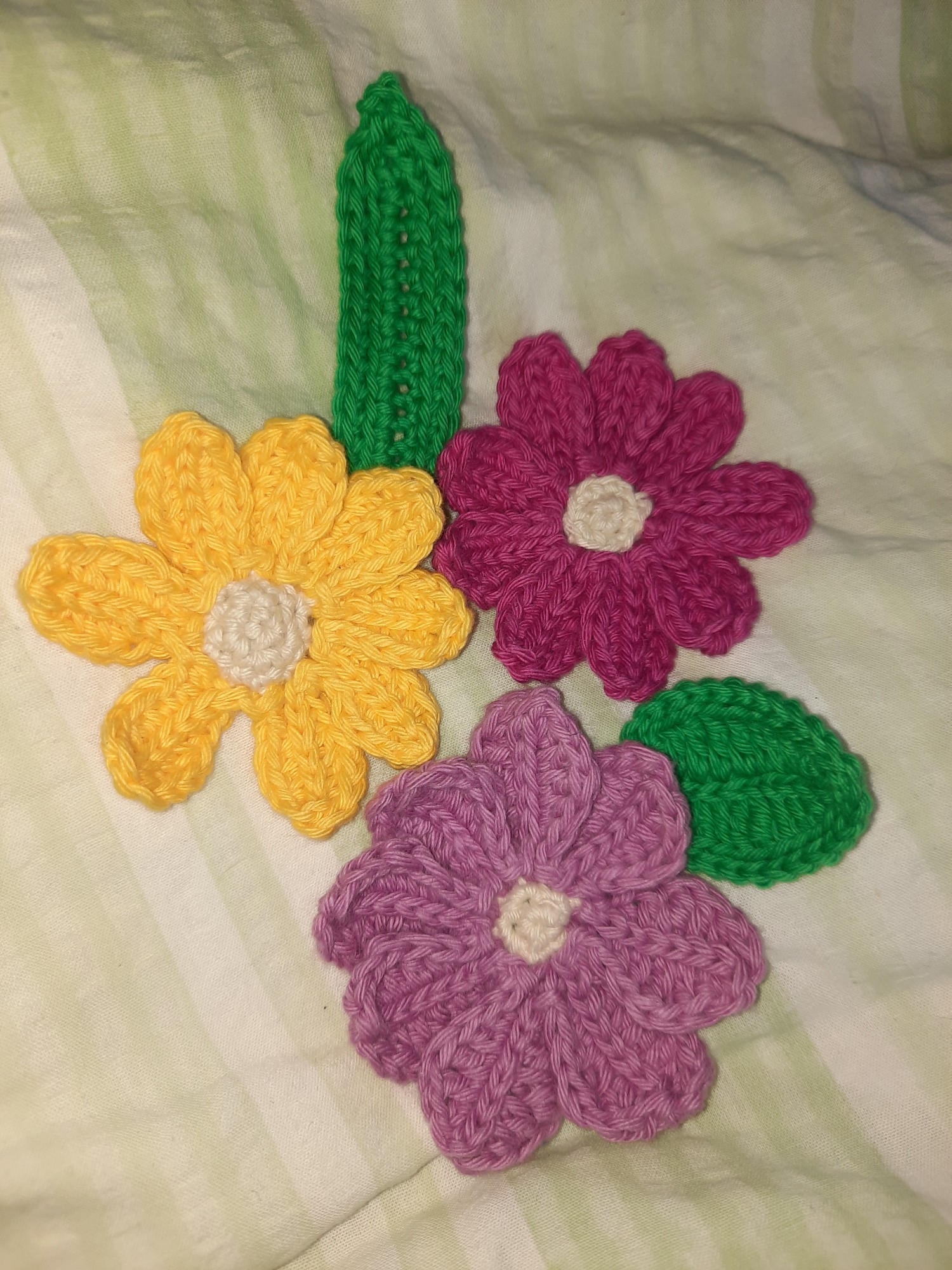 Also ich würde auch Blüten und Blätter häkeln. Gibts da ein Zeitlimit, oder ist es egal, bis wann sie fertig sein müssen. Gestorben wird ja immer irgendwie.