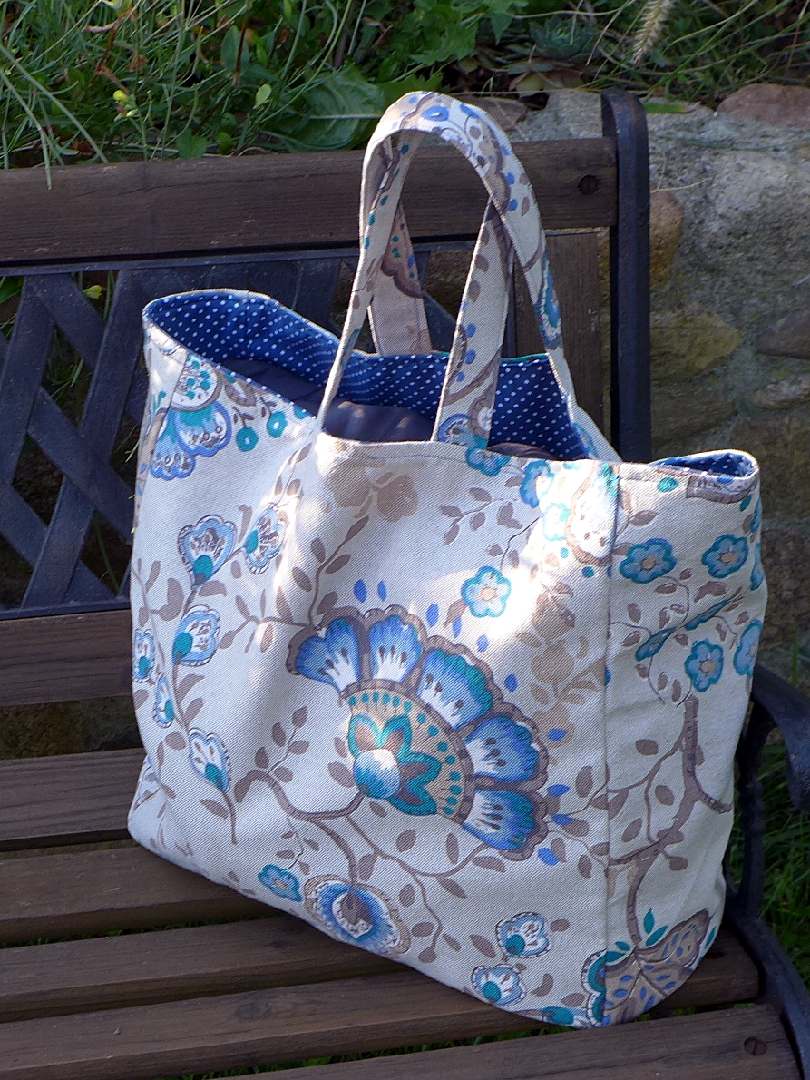 ich habe festgestellt, dass ich eine größere Tasche zum Einkaufen brauche. Deshalb habe ich mir heute eine genäht. Die Tasche ist quadratisch, hat einen breiten, verstärkten Boden. Die Henkel sind mehrfach innen gesichert, sodass sie nicht ausreißen sollten. Und ich habe sie innen mit einer Einlage verstärkt, so schneiden sie bei einer vollen Tasche nicht ein. Ein Futter hat sie natürlich auch. Die Taschengröße und die Henkellänge habe ich genau an meine Größe und Bedürfnisse angepasst. Das geht nur, wenn man die Dinge selber macht.
