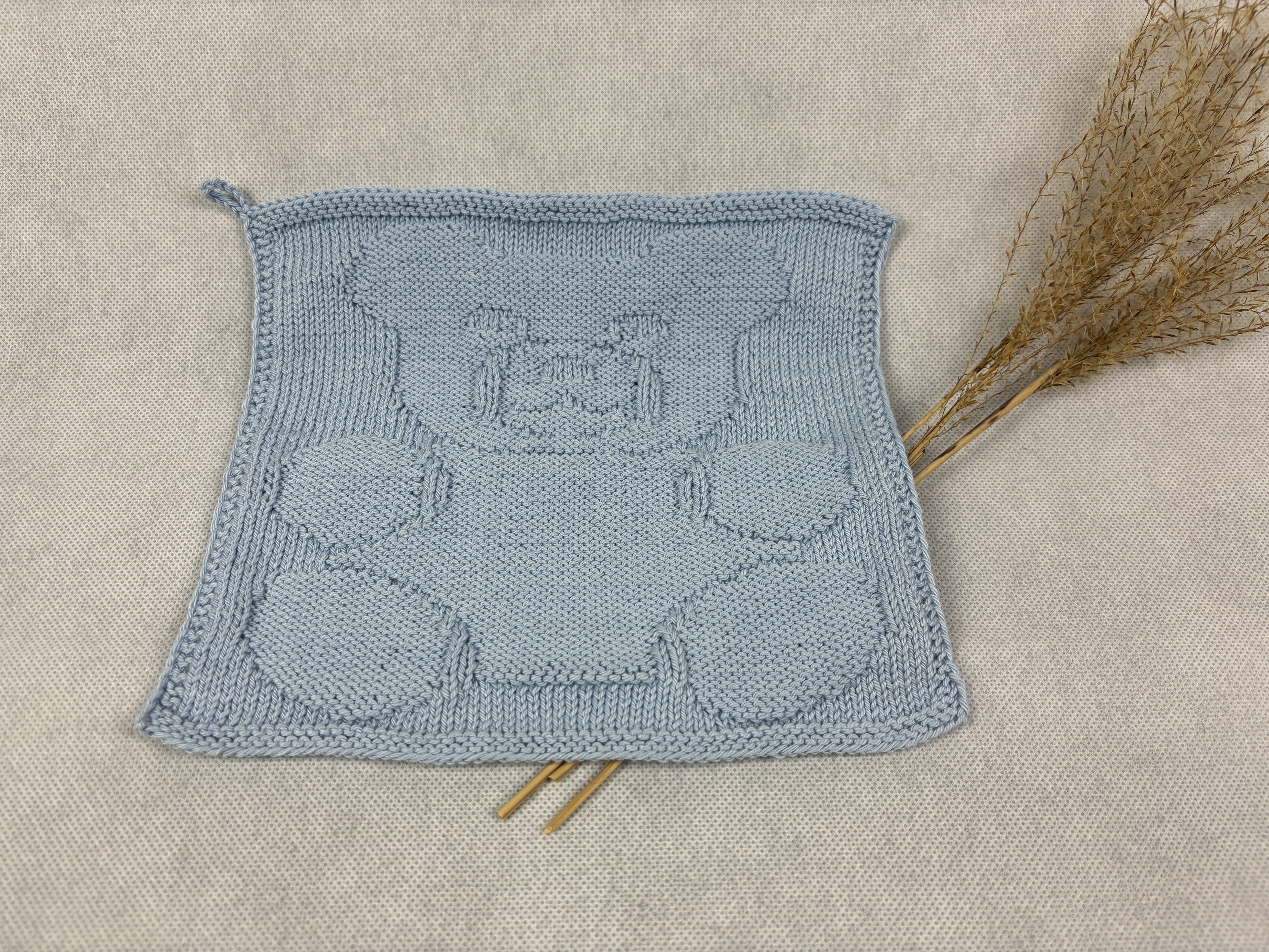 Dieser süsse Bär macht sich total gut als Waschlappen oder als Schmusetuch. Oder vielleicht ziert er auch einen Spültuch für die (Kinder-)Küche? Da der Bär nur mit rechten und linken Maschen gestrickt wird ist er auch für Anfänger gut nachzuarbeiten. Das wäre doch ein schönes kleines Projekt für den Adventskalender oder für Weihnachten.