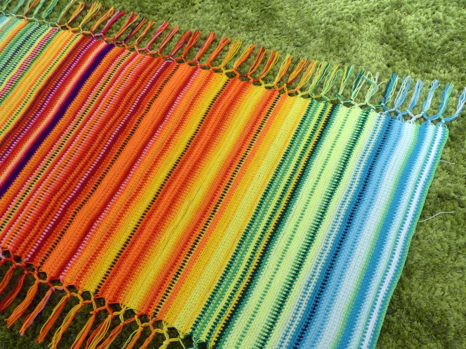 Und endlich fertig geworden ist meine gehäkelte Temperaturdecke aus dem Jahre 2022. Da wir in 2 Monaten schon fast im neuen Jahr sind, wäre das vielleicht auch ein schönes Projekt für Euch. Bei meiner Temperaturdecke häkelt man jeden Tag eine Reihe. Die Farbe darf man sich nicht selber aussuchen, sondern muss die Farbe nehmen, die man im Vorfeld dieser Tageshöchsttemperatur zugeordnet hat. Das macht viel Spaß.