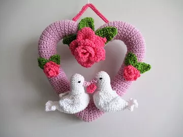 Zur Verlobung, zur Hochzeit, zum Valentinstag und für alle Verliebten: Der Türkranz "Herz mit Tauben" kommt bestimmt gut an! Auch hier kannst du wieder mit vorhandenen Resten arbeiten, denn du benötigst von jeder Farbe je  weniger als ein Knäuel.