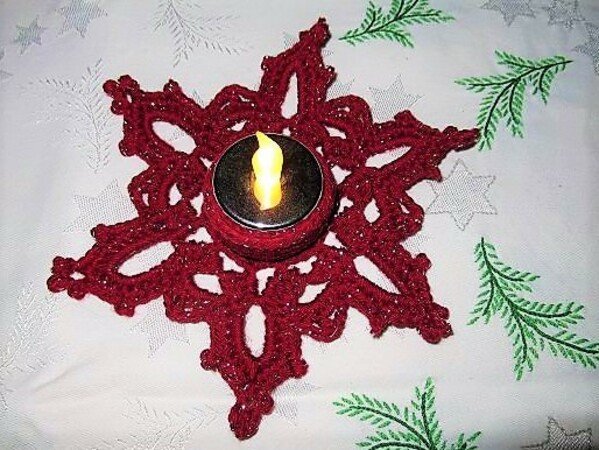 sternförmige Teelichthalter verzaubert deinen Tisch in eine romantsche Festtagstafel. Für einen Teelichthalter brauchst du nur etwa 10 g Baumwollgarn, aus einem Knäuel kannst du also 5 Kerzenhalter häkeln.