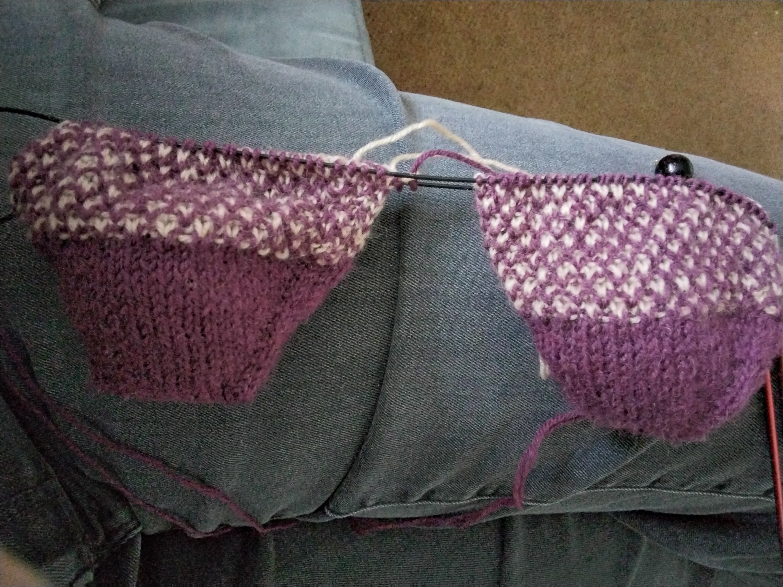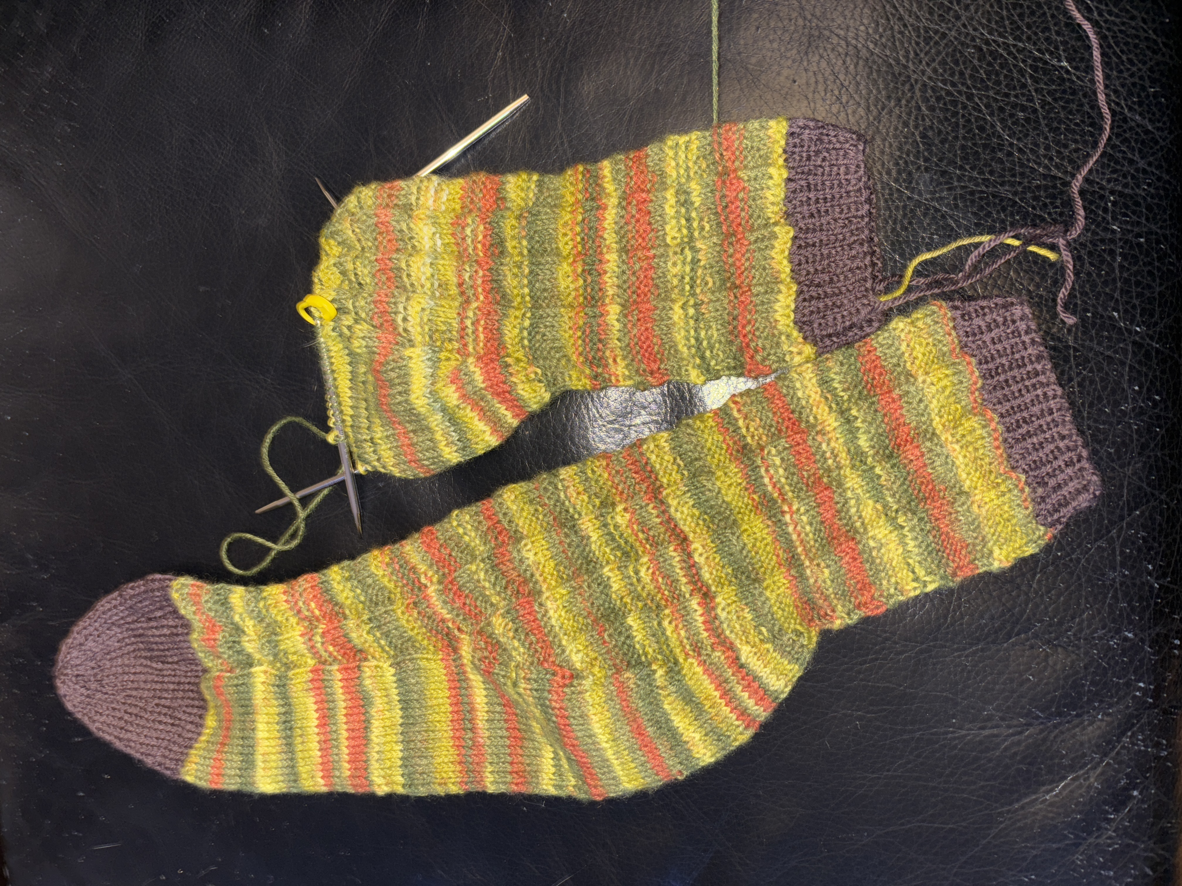 Ich bin auch wieder beim Socken stricken.