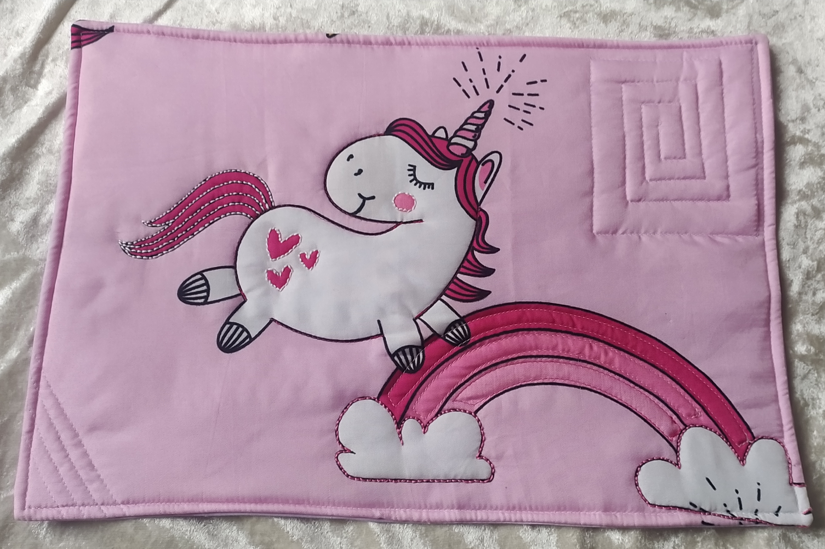 Kurz vor Weihnachten wurde auf jeden Fall mein Tischset mit dem Einhorn fertig. Das lag auch ein paar Monate unbeachtet in einer Kiste.