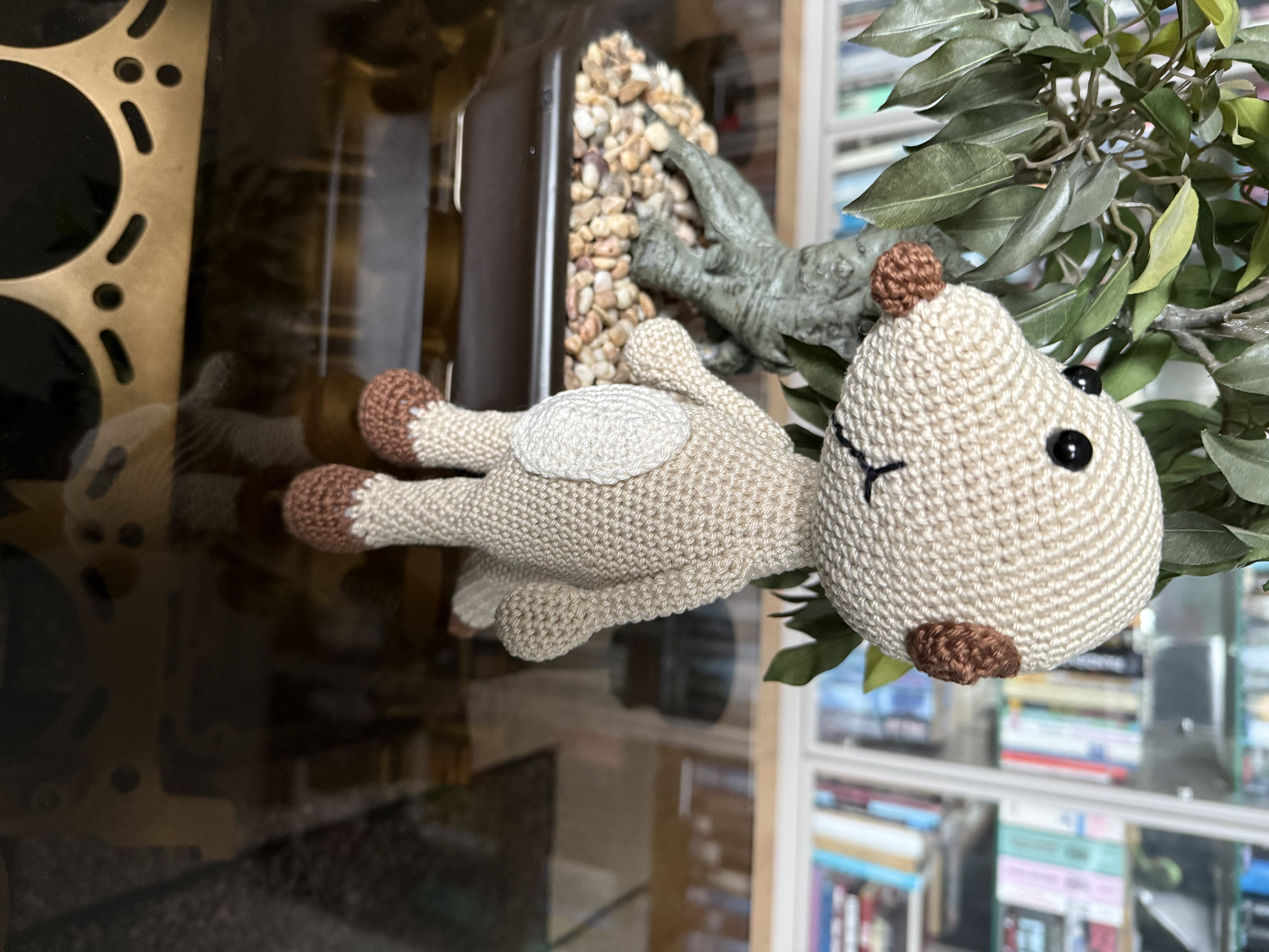 Immer nur Vierecke für die Patchworkdecke umhäkeln war mir auf Dauer zu langweilig, da musste mal eine Unterbrechung her, und ist auch schon fertig, ein Erdmännchen:
