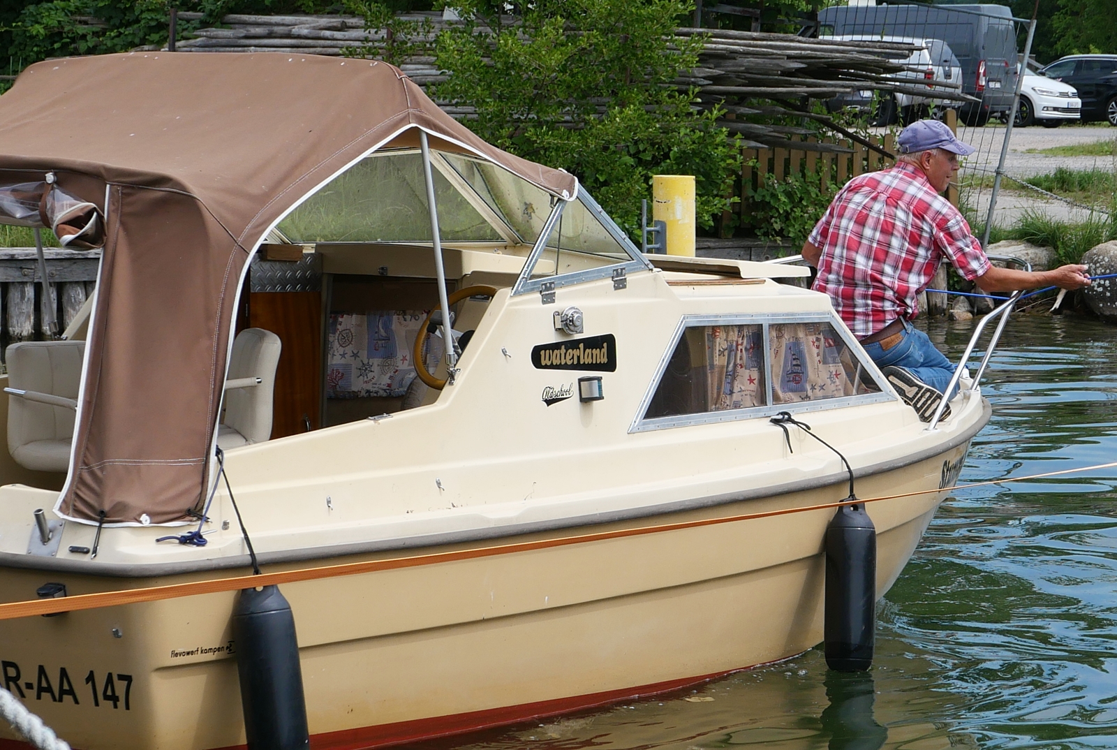 Mein Mann hat sich vor ein paar Jahren ein gebrauchtes, 25 Jahre altes, kleines Motorboot gekauft. Er ist leidenschaftlicher Angler und fährt damit mit seinem Angelfreund immer angeln. Es hat eine kleine Kajüte mit rundherum Fenstern. Man kann also darin übernachten.