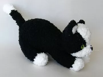 Kätzchen, diesmal ganz aus Flauschgarn für die etwas größeren Kinder. Damit man beim Häkeln die Maschen besser erkennt, verhäkelt man das Plüschgarn zusammen mit einem gleichfarbigen Beilauffaden. Das gibt dem Kuscheltier auch noch zusätzlich Formstabilität. Wenn du nicht gerne mit Plüschgarn häkelst, kannst du aber auch ein normales Acrylgarn verwenden. Wenn du es flauschig haben möchtest, wird das Kuscheltier nach Fertigstellung kräftig mit einer Tierbürste durchgebürstet. Dadurch entsteht ein feiner Flaum.