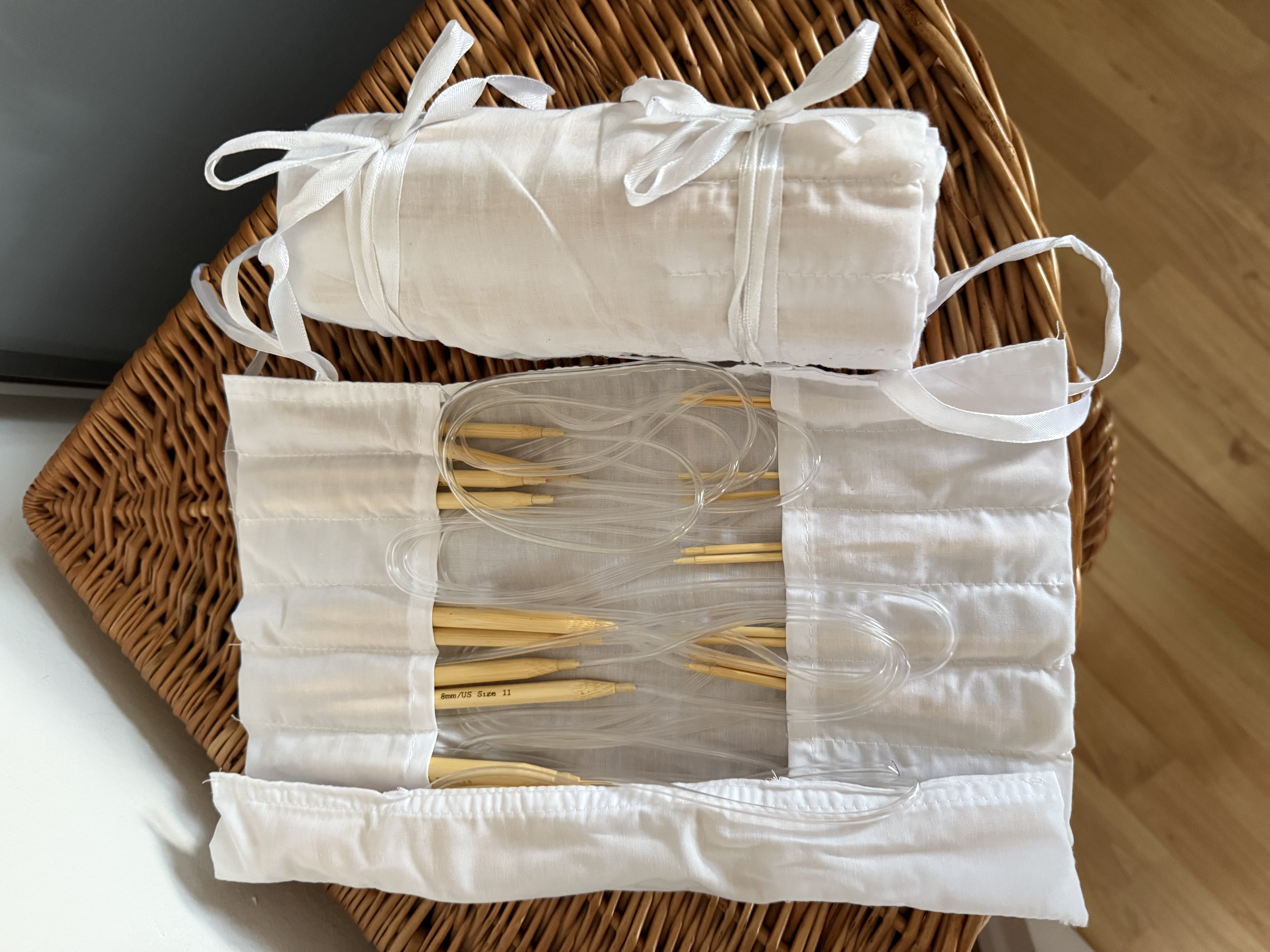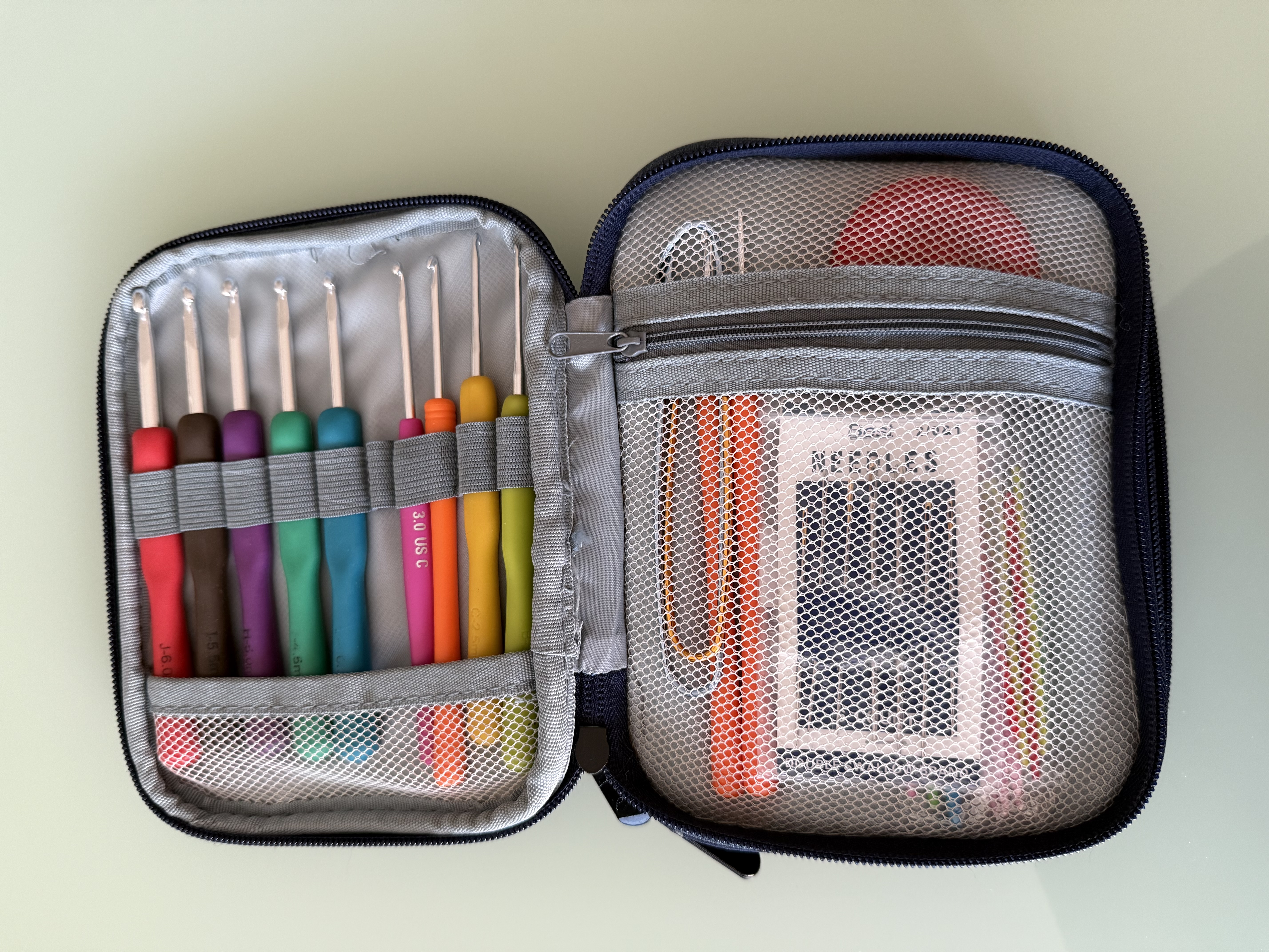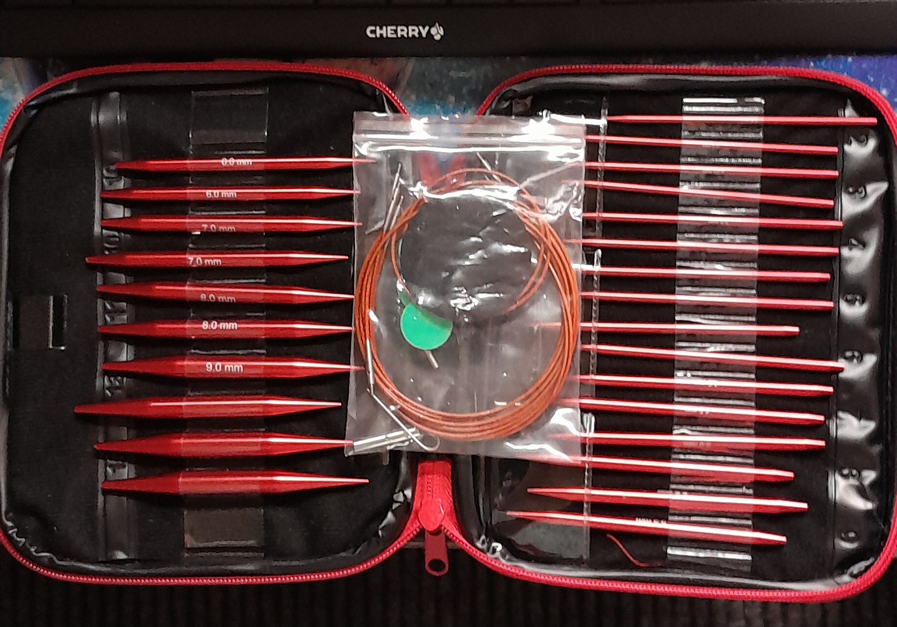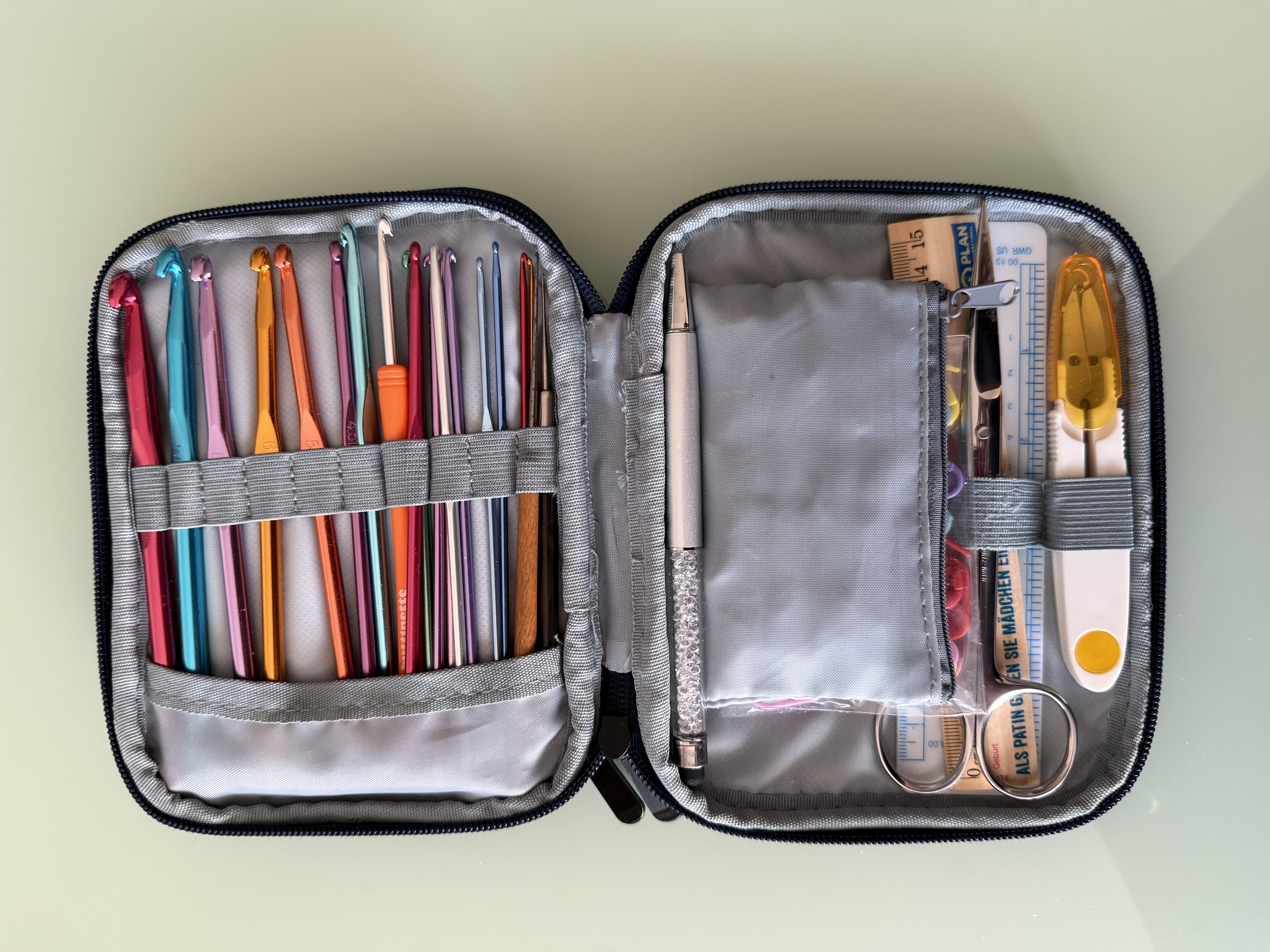 ich hab vom Göga eine Mappe bekommen wo mal seine Zeichenstifte drin waren, da hab ich jetzt meine nadeln drin verstaut so habe ich sie alle beisammen