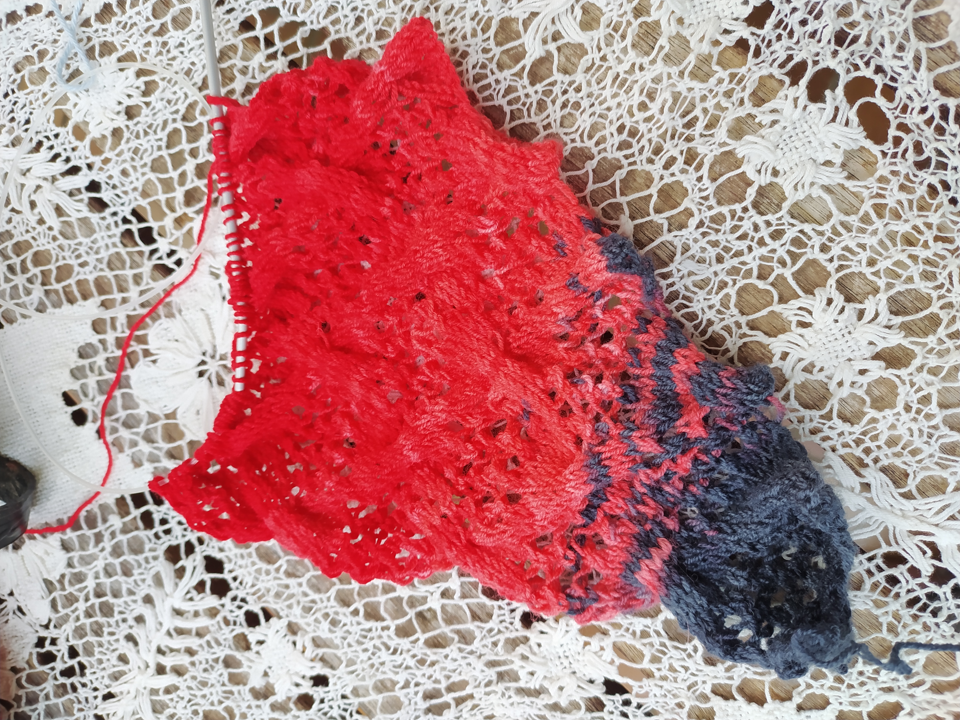 Bild ist noch von Anfang letzter Woche, bald bin ich bei Abnahme. Gut abgelagertes Garn aus dem Jahre 2017.