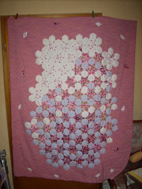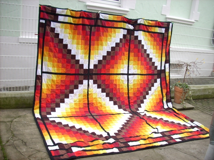 Diese 4 Quilts waren sehr Zeitaufwändig, denn sie sind reine Handarbeit, da wurde nichts mit der Nähmaschine gemacht, den Sternenquilt habe ich mal für meine Schwester gelieselt, den gelben hat meine jüngste Tochter bekommen, den gestreiften die Sandwichtochter und den Blumengarten die älteste Tochter