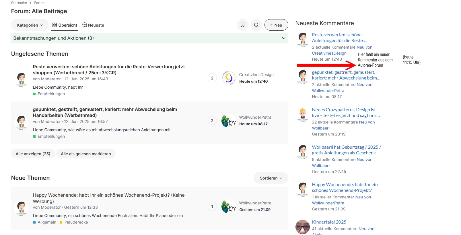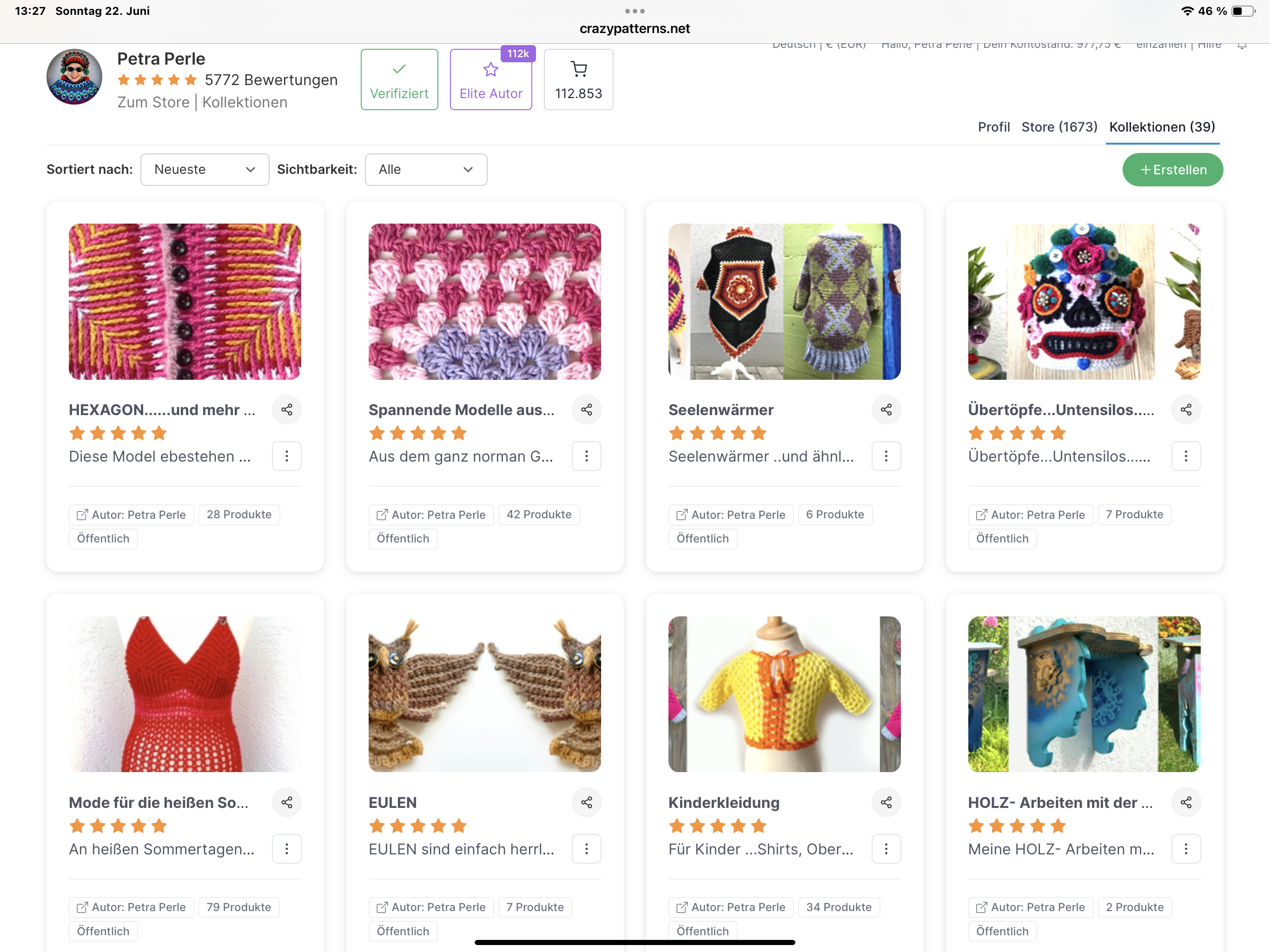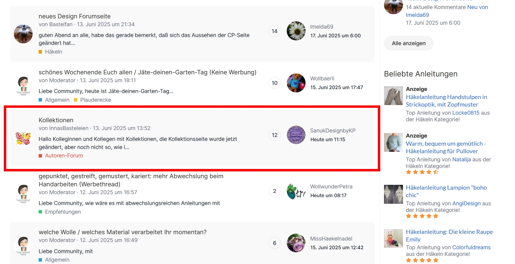 Diese Anzeige geht dann über alle Kategorien (Häkeln, Stricken…) hinweg