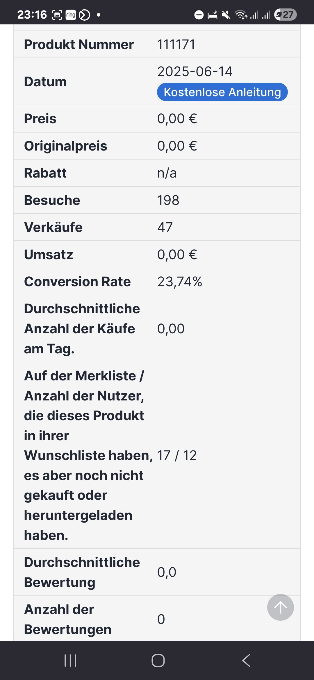 Was ich toll fände: wenn man im Punkt „Einnahmen“ ist und dort z.B. die Zeile 9. Juni vor sich sieht (z.B. 23 Verkäufe). Dann sollte man darauf klicken können, um zu sehen, welche 23 Objekte das waren, die da verkauft wurden. Heute muss man aus „Einnahmen“ raus und zum „Kontoauszug“ wechseln.