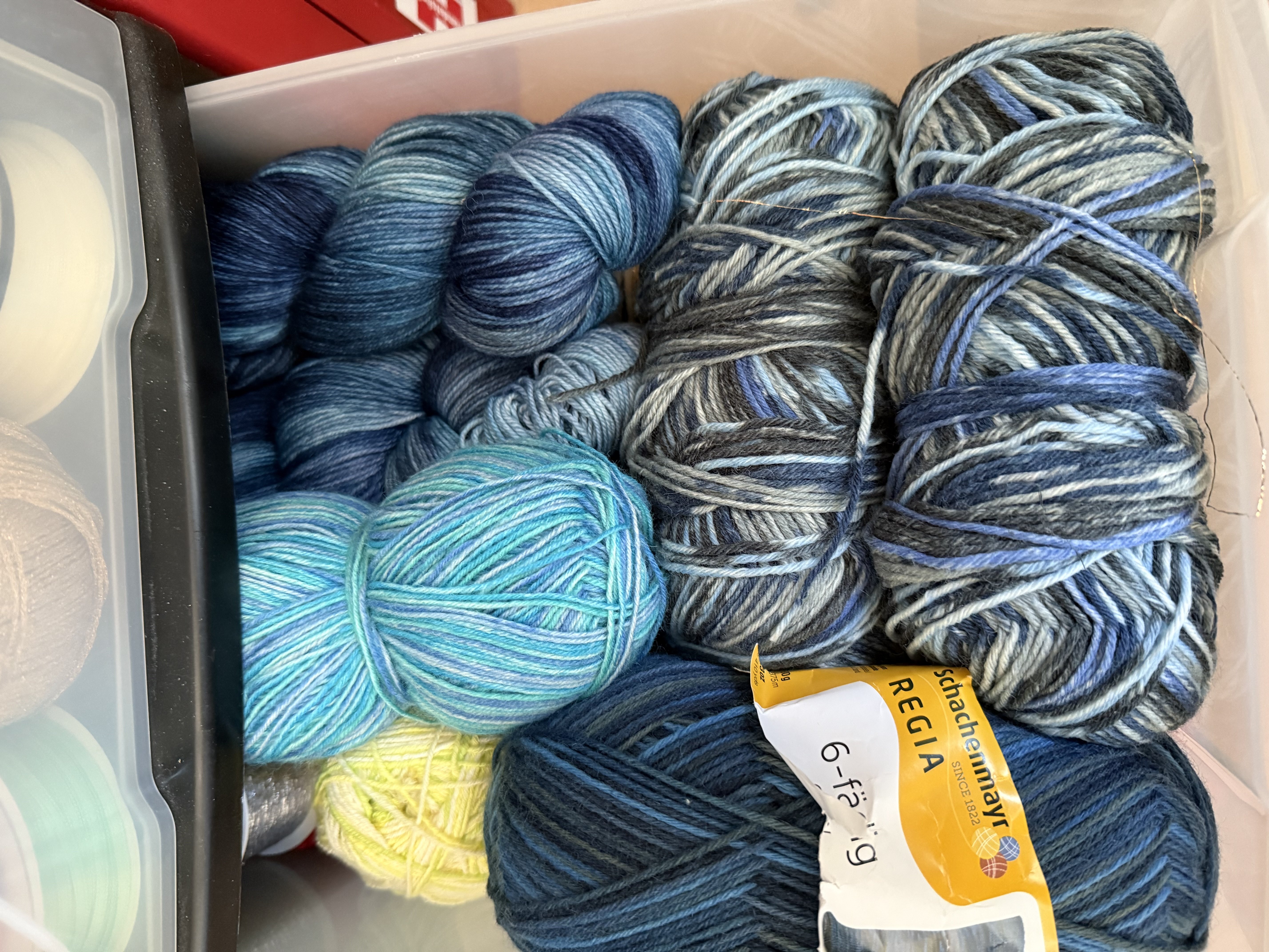 am Dachboden steht ein großer Blauer Müllsack mit geschenkter Wolle, hier in der Wohnung sind zwei Kartons... Muss wahrscheinlich mal aussortieren u einiges verschenken...