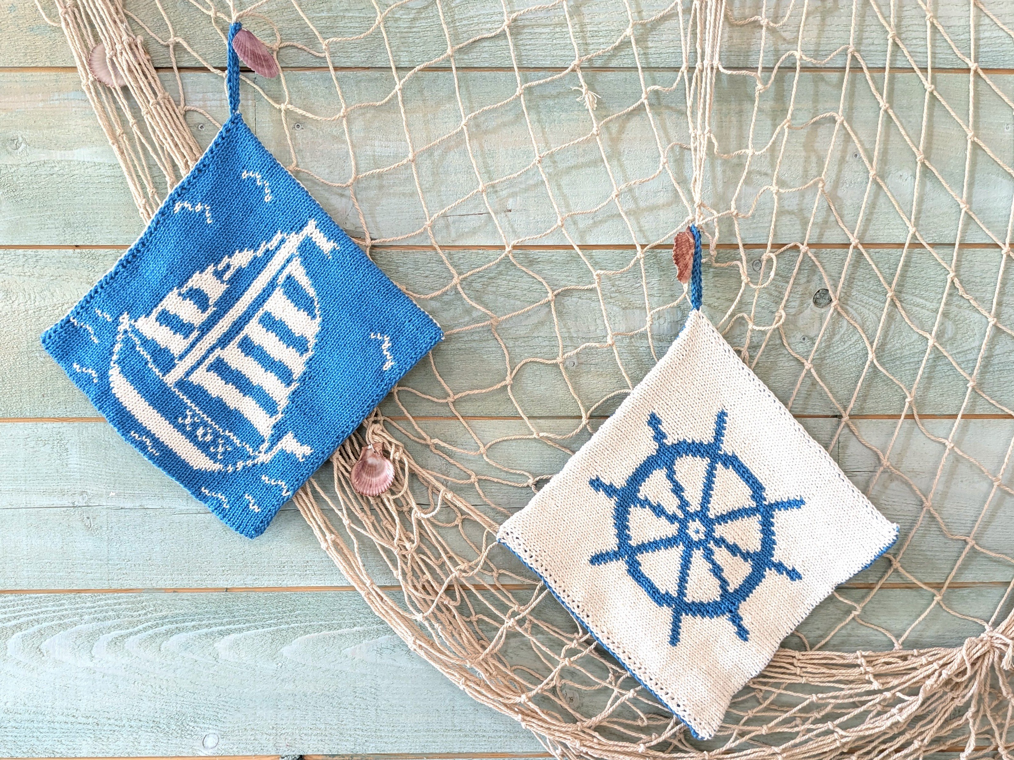 Maritim geht immer - vor allem kurz nach der Urlaubszeit, wenn man den Duft vom salzigen Meerwasser noch in der Nase hat. Aber auch sonst wecken die Motive schöne Erinnerungen an besondere Momente an der Küste. Die Topflappen sind aber nicht nur eine tolle Deko, sondern natürlich vor allem praktische Küchenhelfer - dank der doppelten Strickweise sind sie schön dicht und halten die Hitze besser ab als einfach gestrickte oder gehäkelte Topflappen.