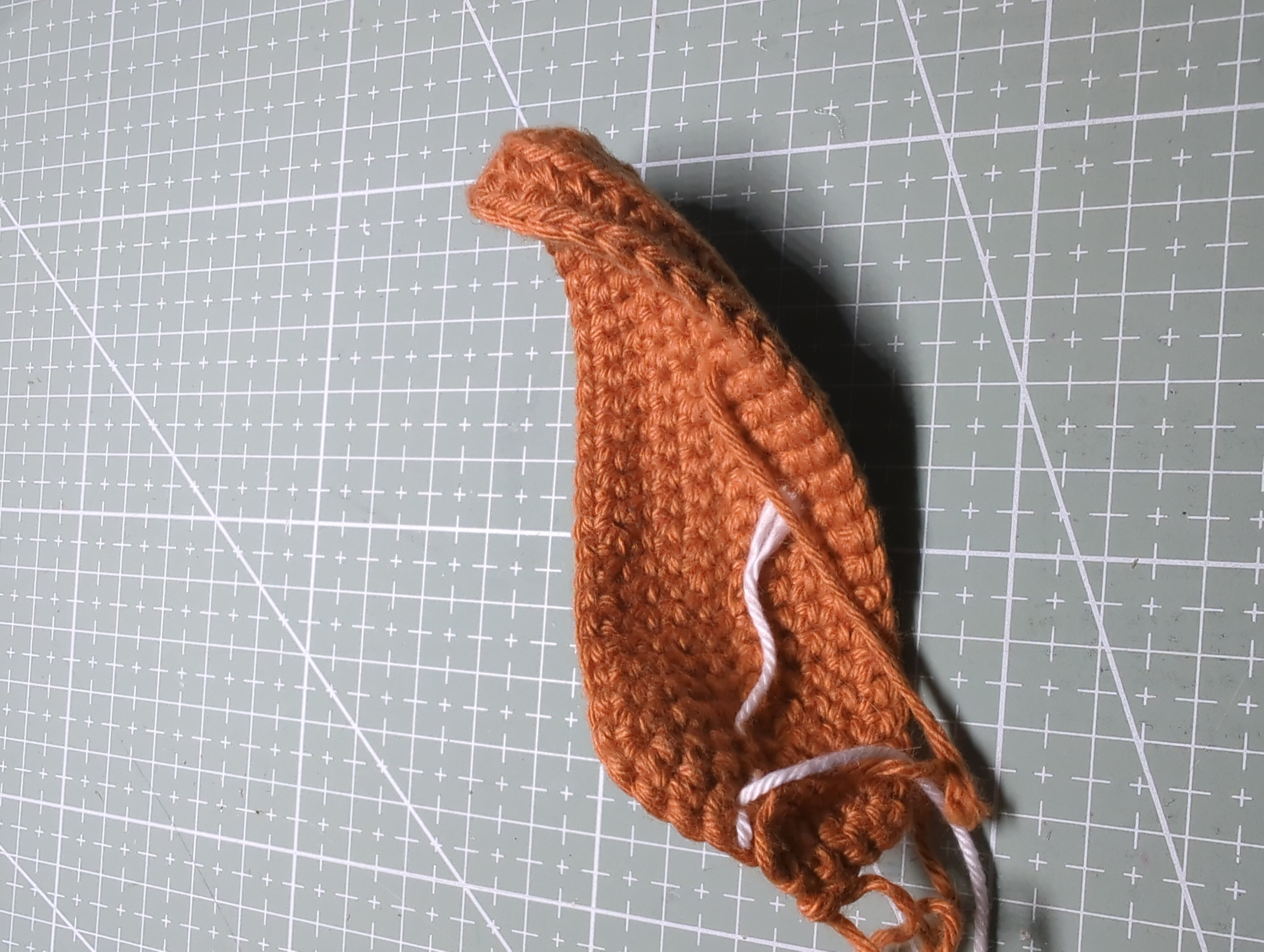 Ich häkel einen Dackel, (nach einer Anleitung von hier) der hat ja bekanntlich einen längeren "Bauch", so startet das Ganze im Oval mit zunahmen an den Enden, soweit so klar.