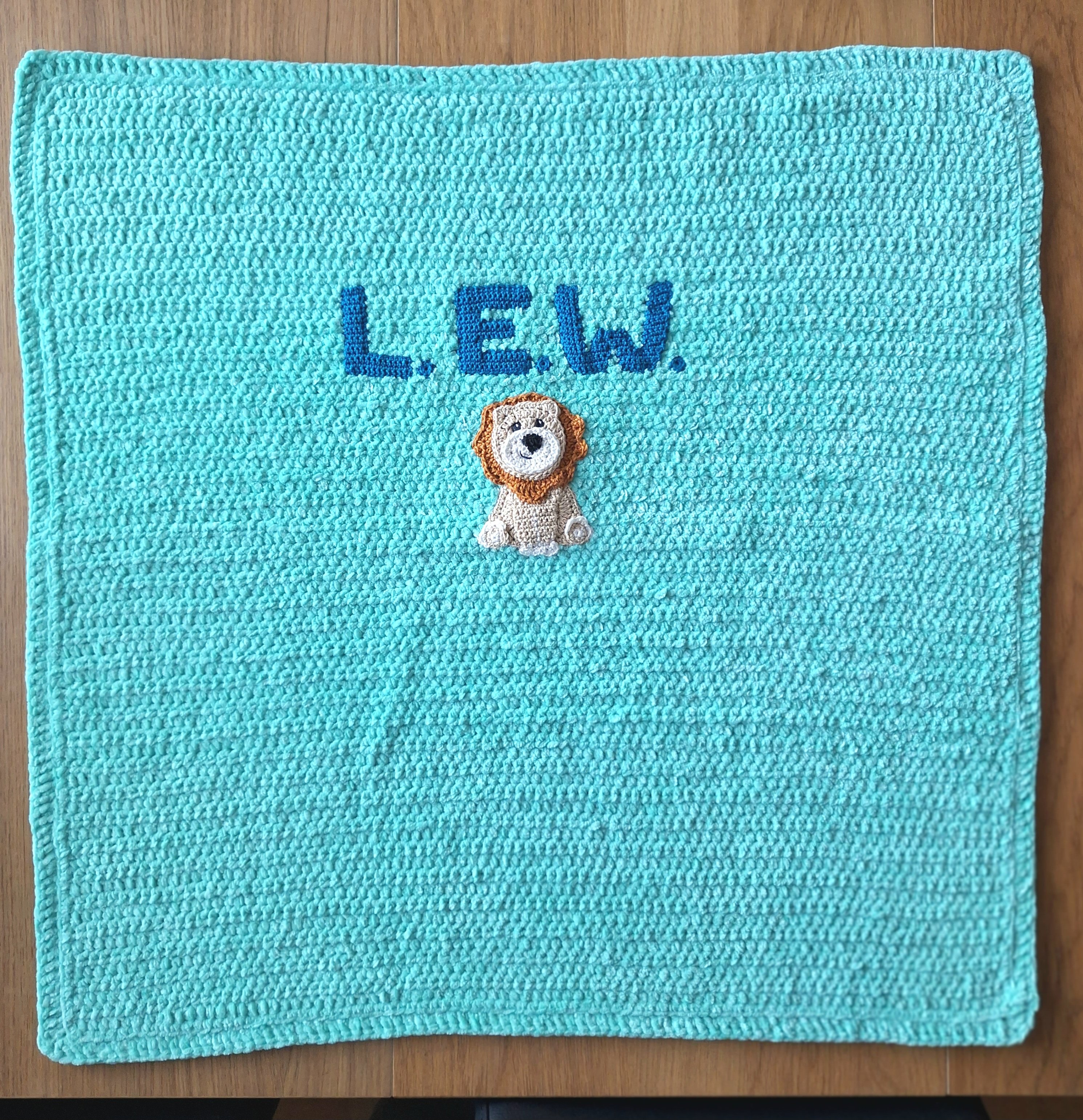 Die Applikationen (der Löwe und die Initialen des Namens) sind aber aus Baumwolle entstanden, für mehr Details.