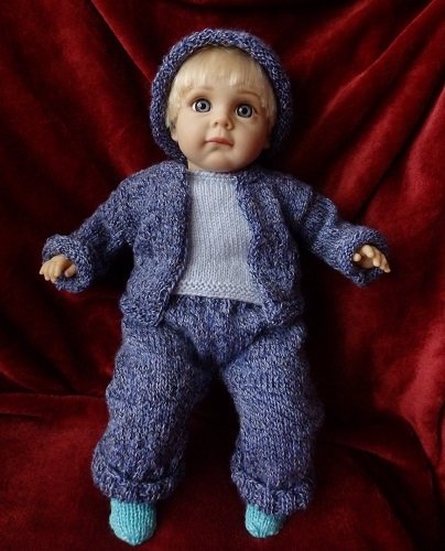 Habe einen Anzug mit Shirt und Mütze für Timmi gestrickt.