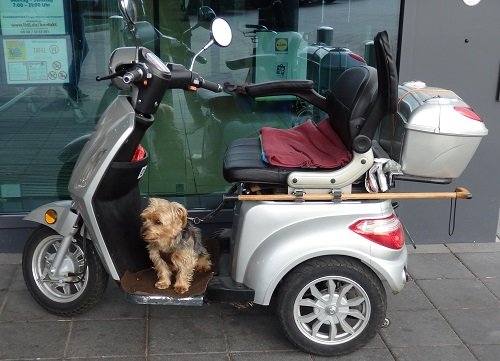 Diesen süßen kleinen "Biker" habe ich heute wiedergesehen. Er ist immer mit seinem Herrchen unterwegs.