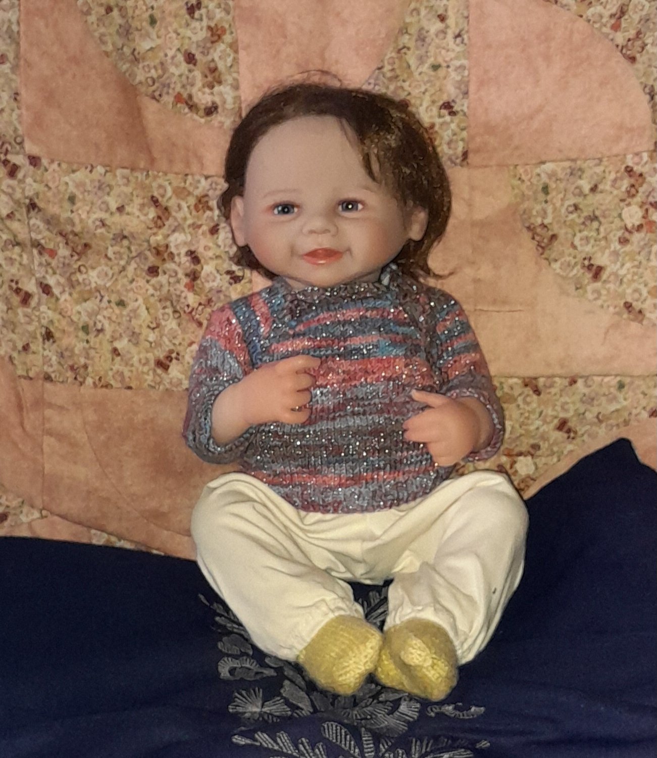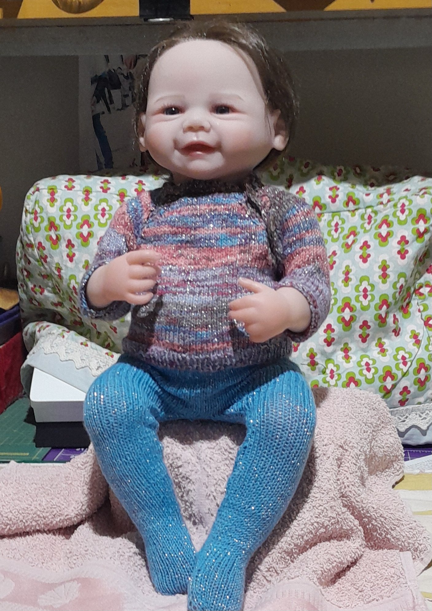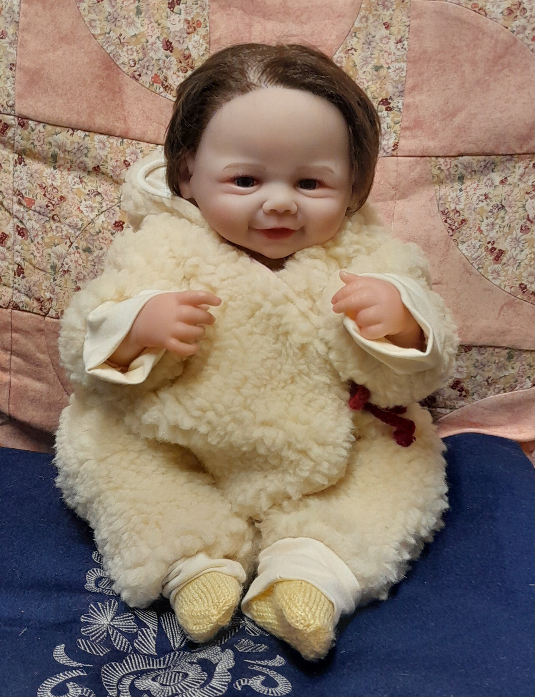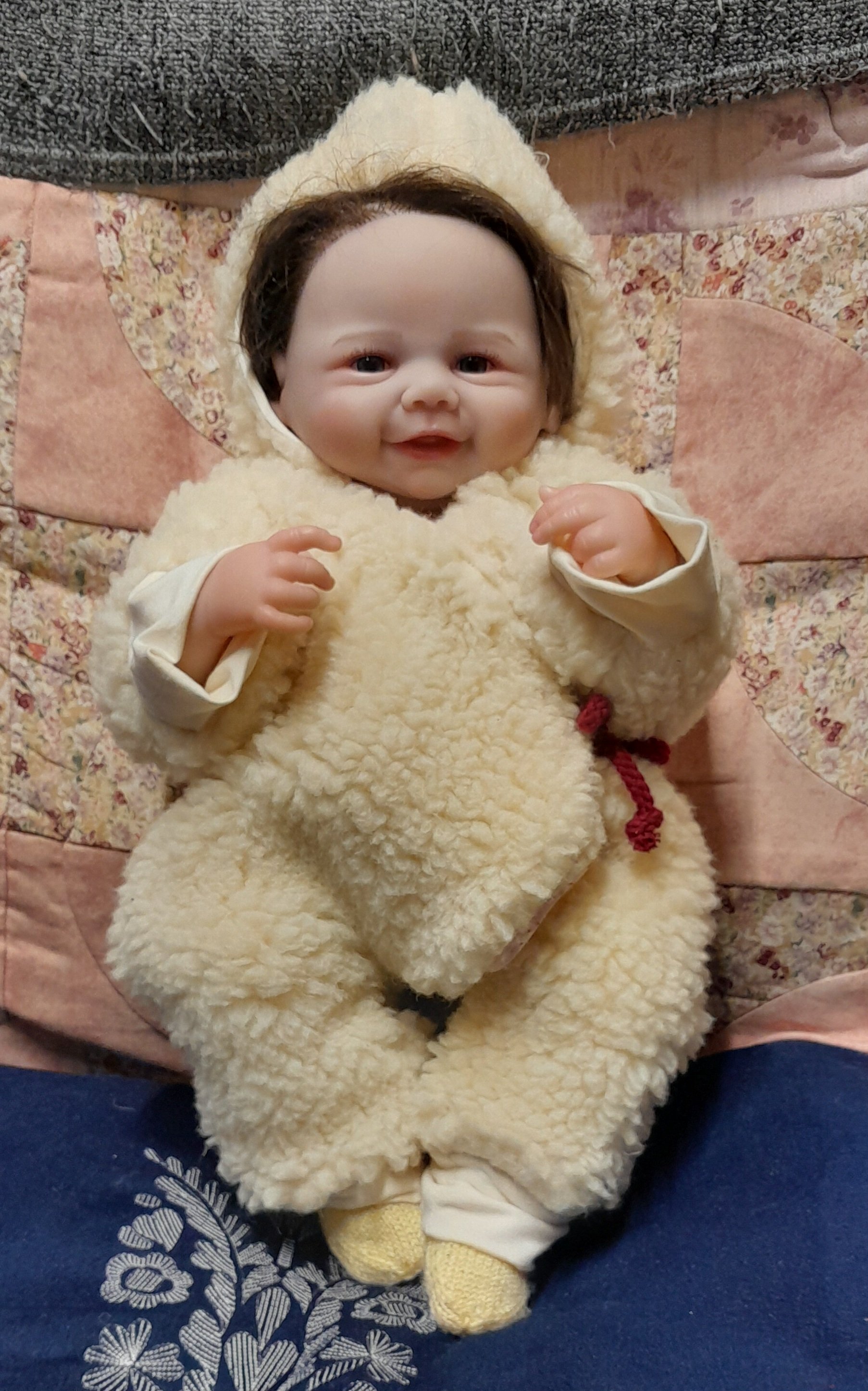 in meinem Stoffundus fand ich diesen leichten Wollstoff, (Tuch) und hab meiner Lilly davon ein Bettzeug genäht, Innen habe ich Volumenvlies reingepackt das es schön warm ist, :-) es ist ein Rest von einem Blazer den ich mir mal genäht habe.