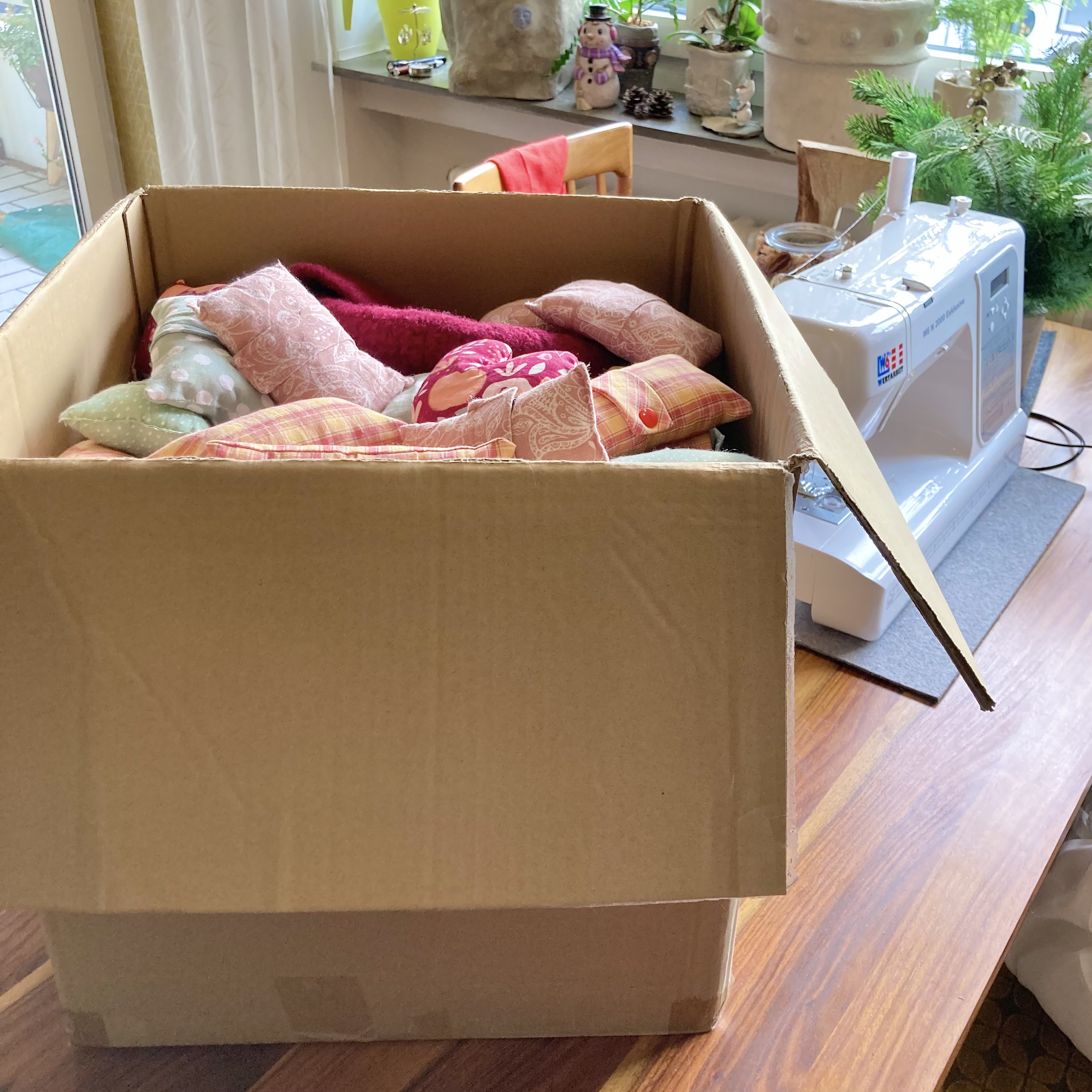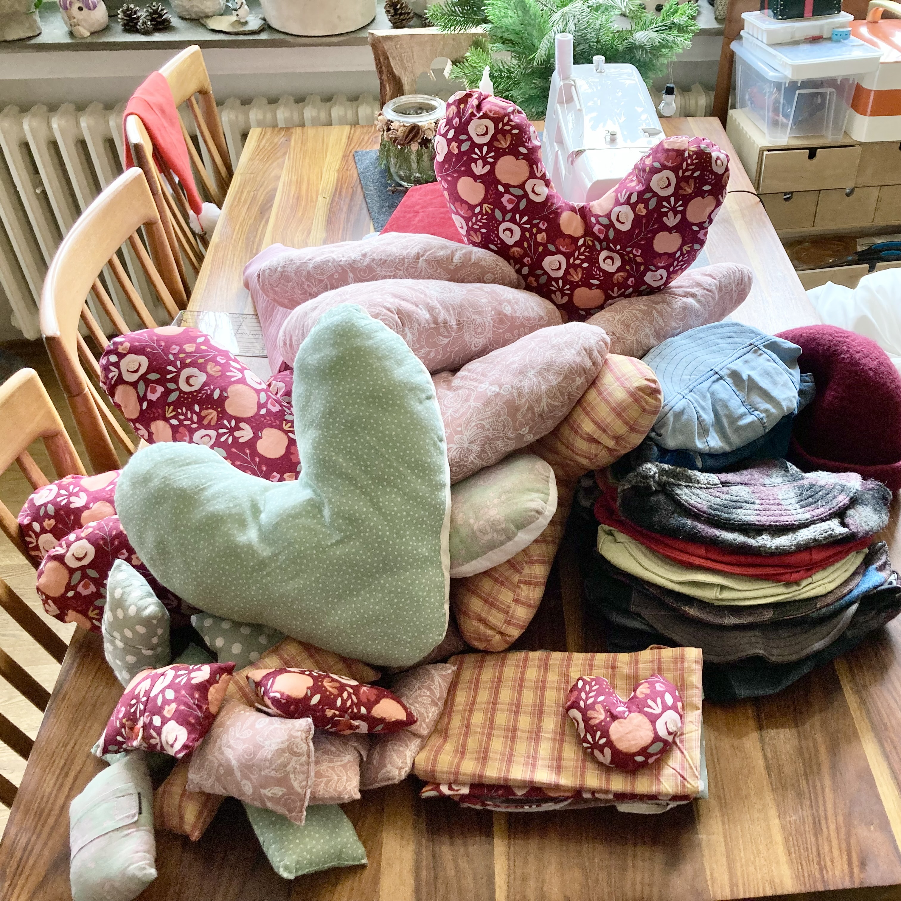 24 Mützen, 15 Portkissen (Polster für den Anschnallgurt), 11 Herzkissen zur Druckentlastung nach einer Brust-OP und 9 kleine Drainage-Beutel waren es am Ende.