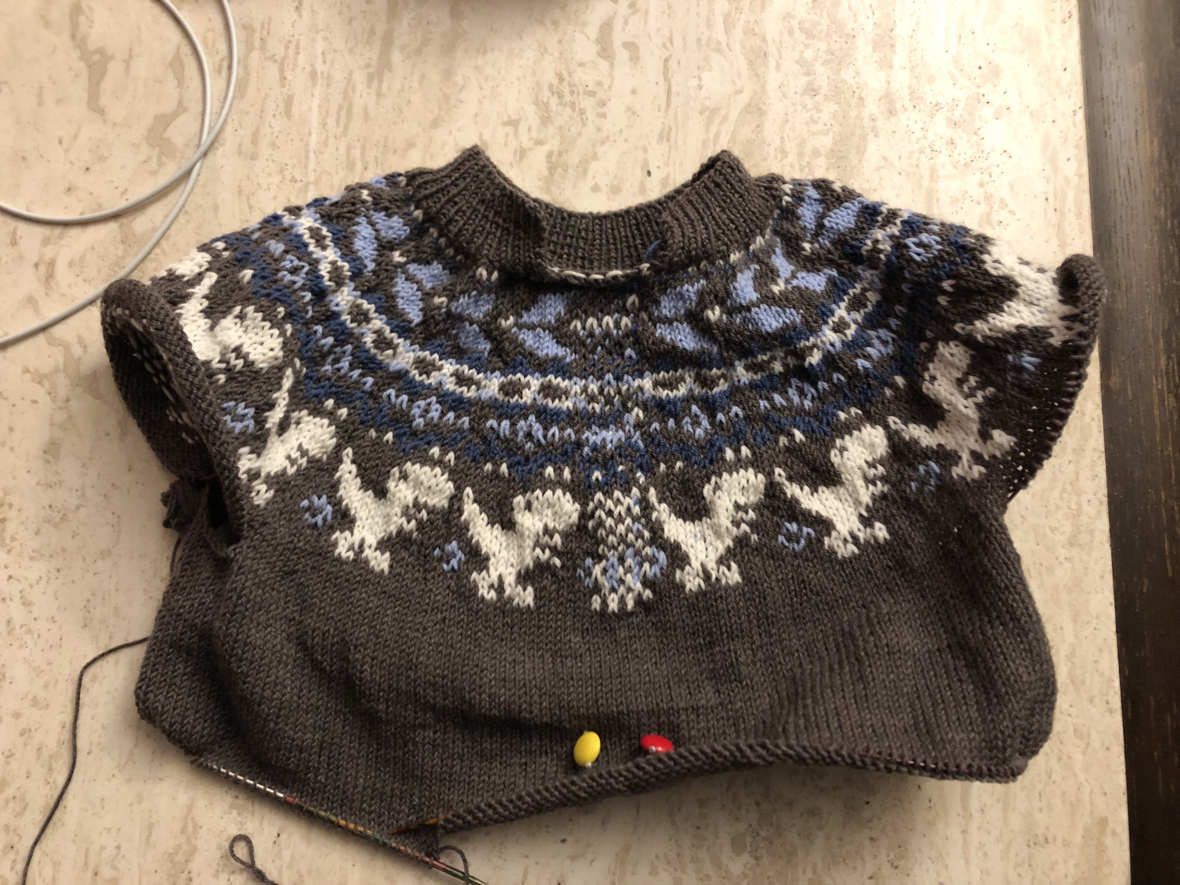 Beim Fair Isle stricken ist das Rundstricken für mich auch erheblich einfacher. Die Farbwechsel lassen sich da für mich besser händeln als wenn ich Hin- und Rückreihen stricke. Das wird dann bei mir auch ganz ungleichmäßig.