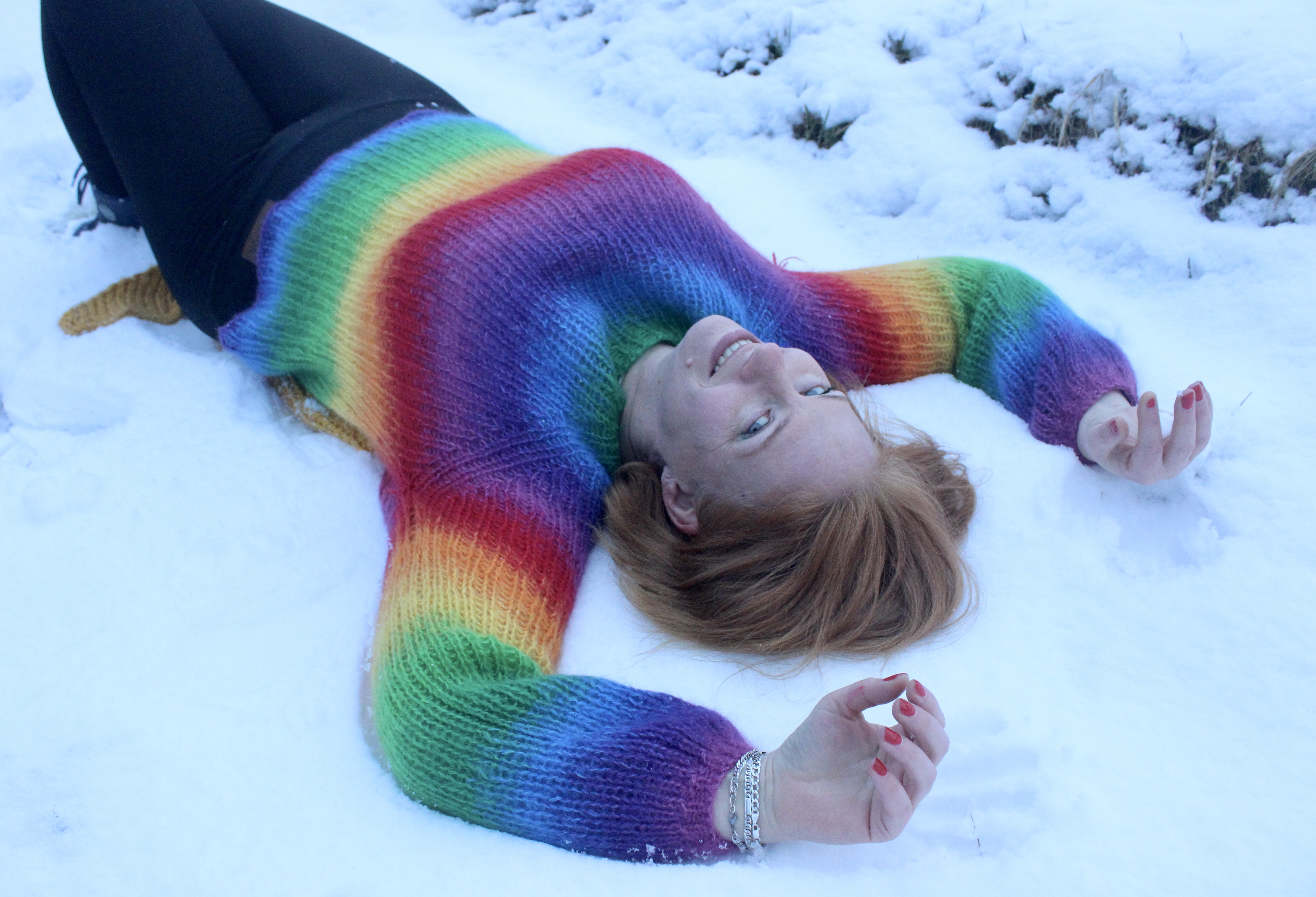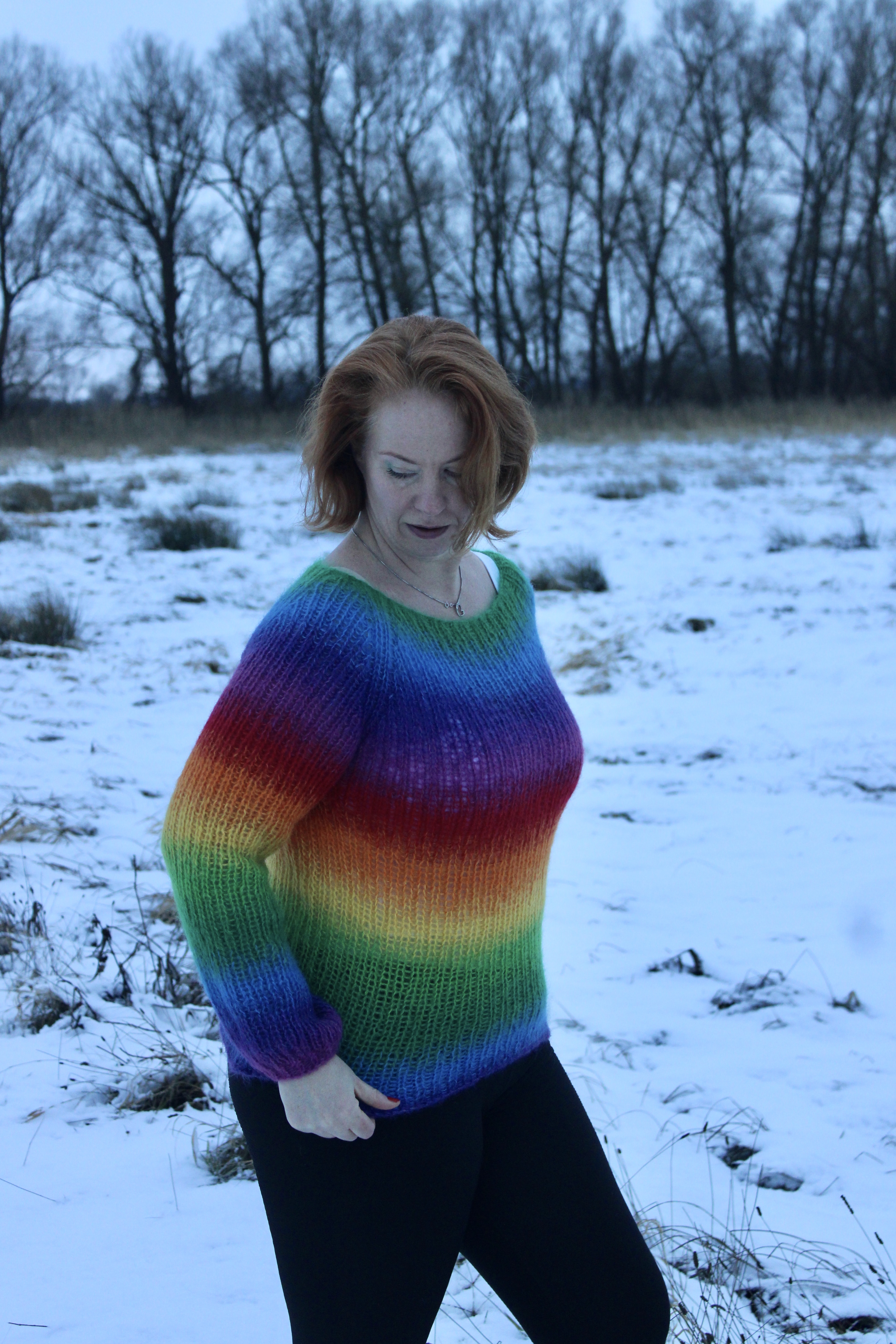 ich hatte das Schneewetter genutzt, den bunten Regenbogenpullover mal toll in Szene zu setzen. Er ziert schon länger meinen Kleiderschrank und macht gute Laune und wärmt ganz toll. Ich habe ihn freestyle aus 4 Fäden KidSilk Mohair von Hobbii gestrickt. Der Farbverlauf entstand durch auswechseln der einzelnen Fäden.42 Gewinne / 300 € Gesamtwert: 30×5 €, 10×10 €, 2×25 € – einfach Newsletter aktivieren. Kein Kauf nötig. Abmeldung jederzeit. Gewinne in Form von Crazypatterns‑Einkaufsguthaben. Mehr Informationen