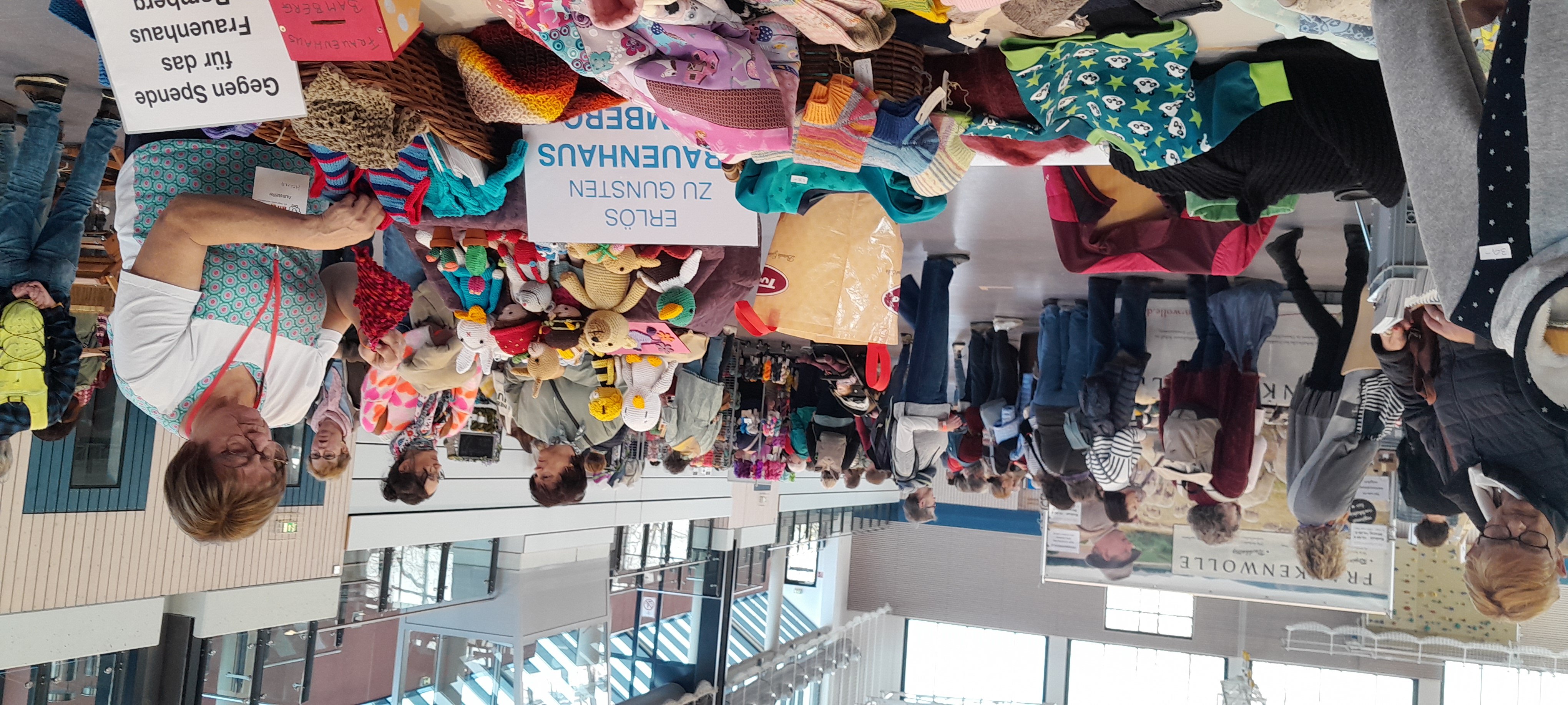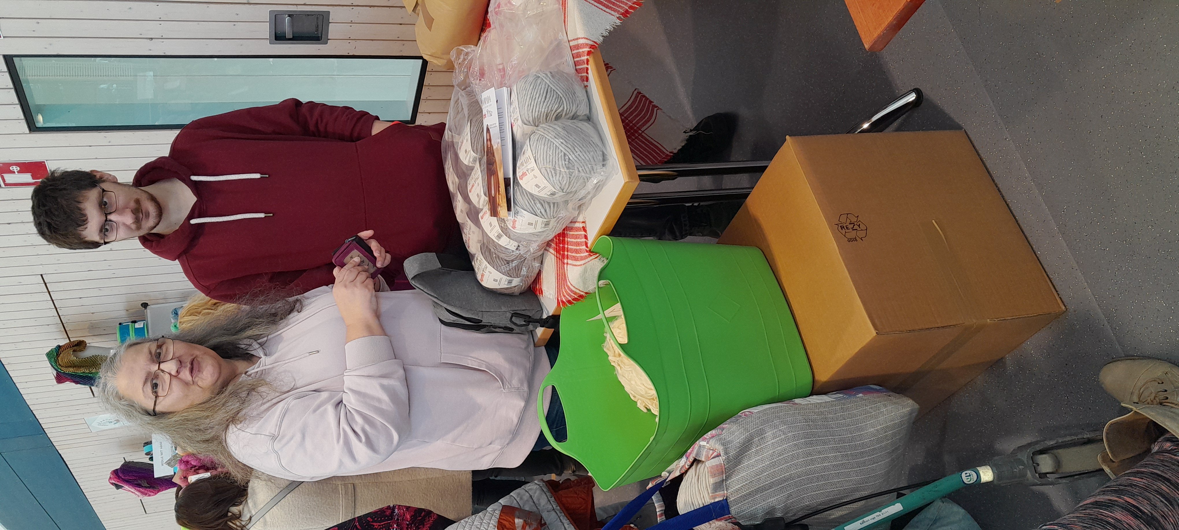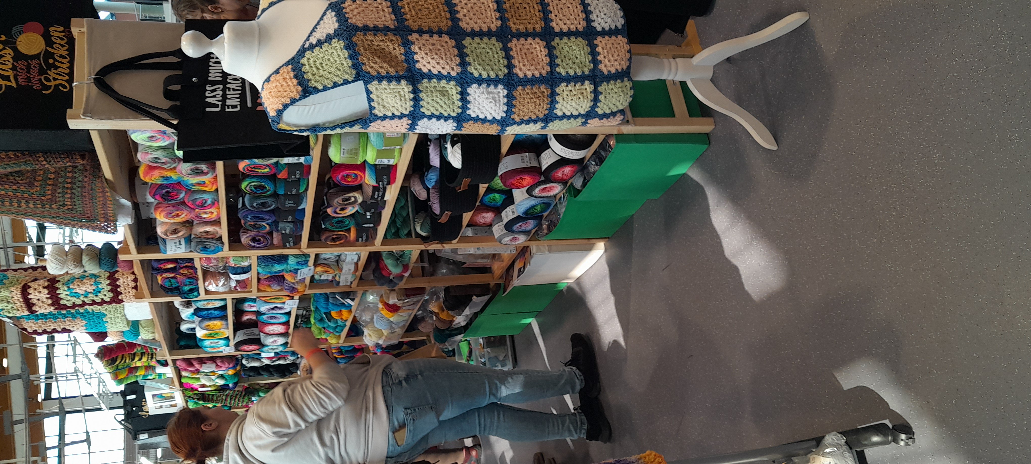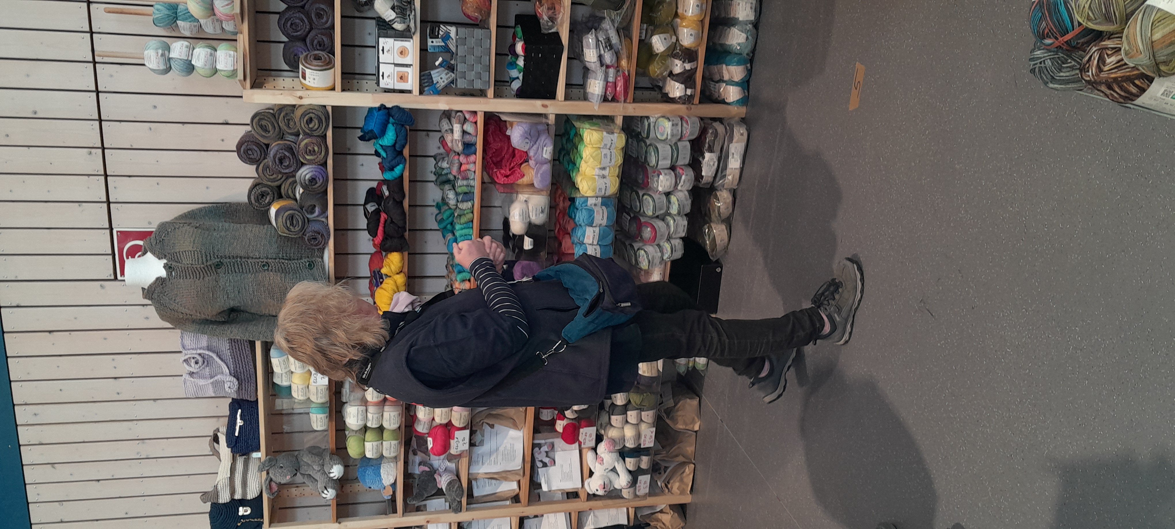 Tochter und Enkel beim Wollekauf für eine Jacke für den Enkel