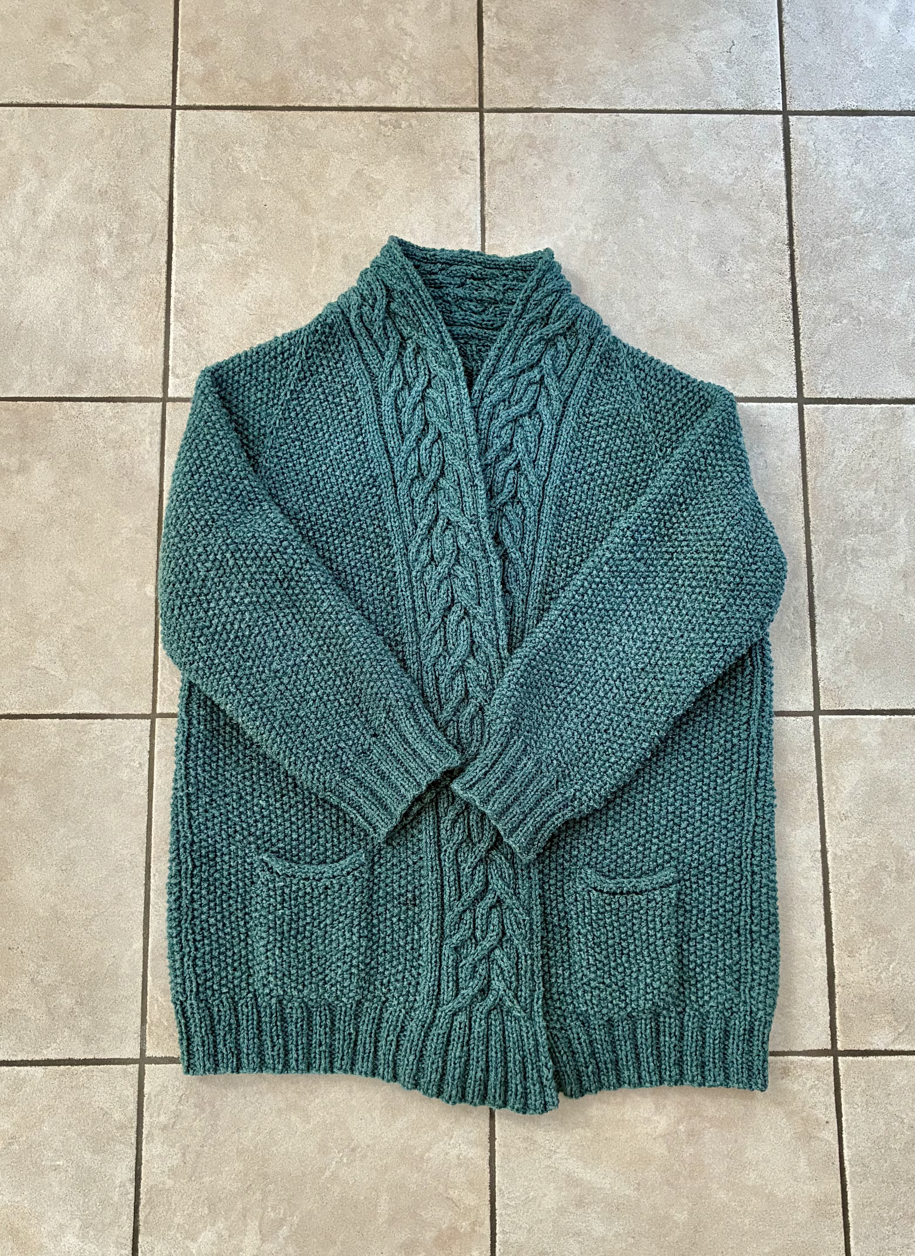 So habe ich mal ein wunderschönes Strickkleid aus edler Wolle gestrickt, um dann zu merken, dass die Wolle viel zu warm ist und ich dieses Kleid fast nie trage, weil es in unserer Wohnung nicht soooo kalt wird. Daraus ist nun eine hübsche Jacke entstanden und diese wird regelmäßig getragen.