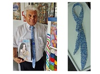 Trendy – hier in Blau-Weiss mit Bast gehäkelt – ist die Krawatte ein