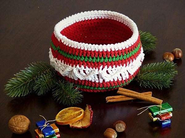 anspruchsvollen Muster aus Reliefmaschen ist es ein echter Hingucker und ideal, um darin kleine Naschereien anzubieten.