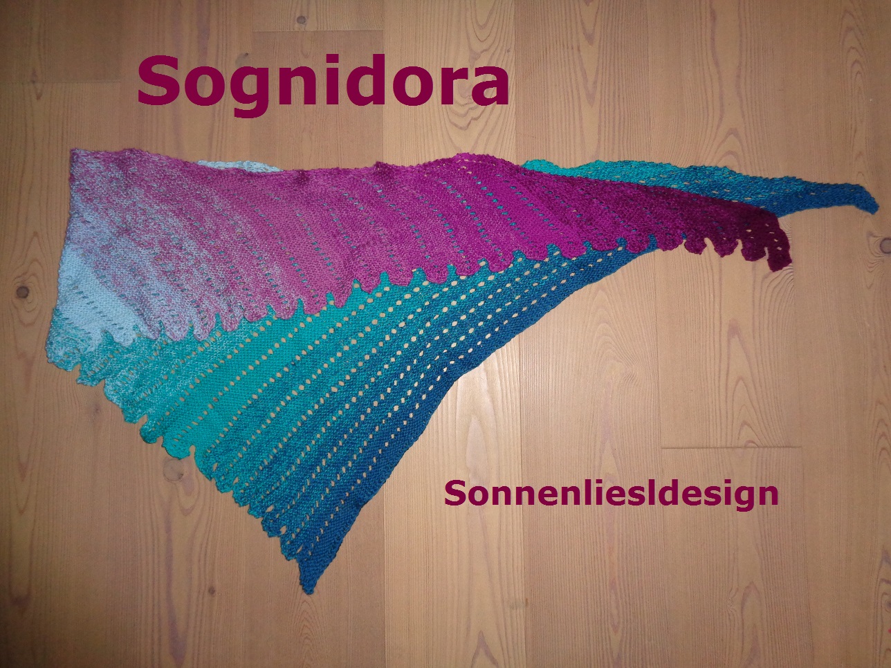 Das Tuch wird von der Seite aus gestrickt und ist recht einfach zu arbeiten, sodass auch weniger geübte Strickerinnen damit zurecht kommen sollten.