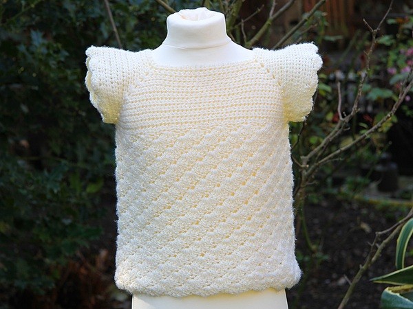 Für das Top werden zwei gleiche Teile ohne Zu- und Abnahmen (mit geradem Ausschnitt) gehäkelt, die am Schluss zusammengenäht werden.