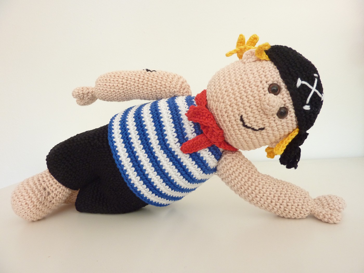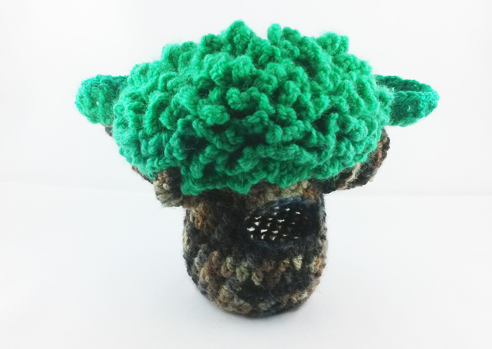 Material: Wolle (grün, gelb, weiß, etwas rot und schwarz ), passende Häkelnadel