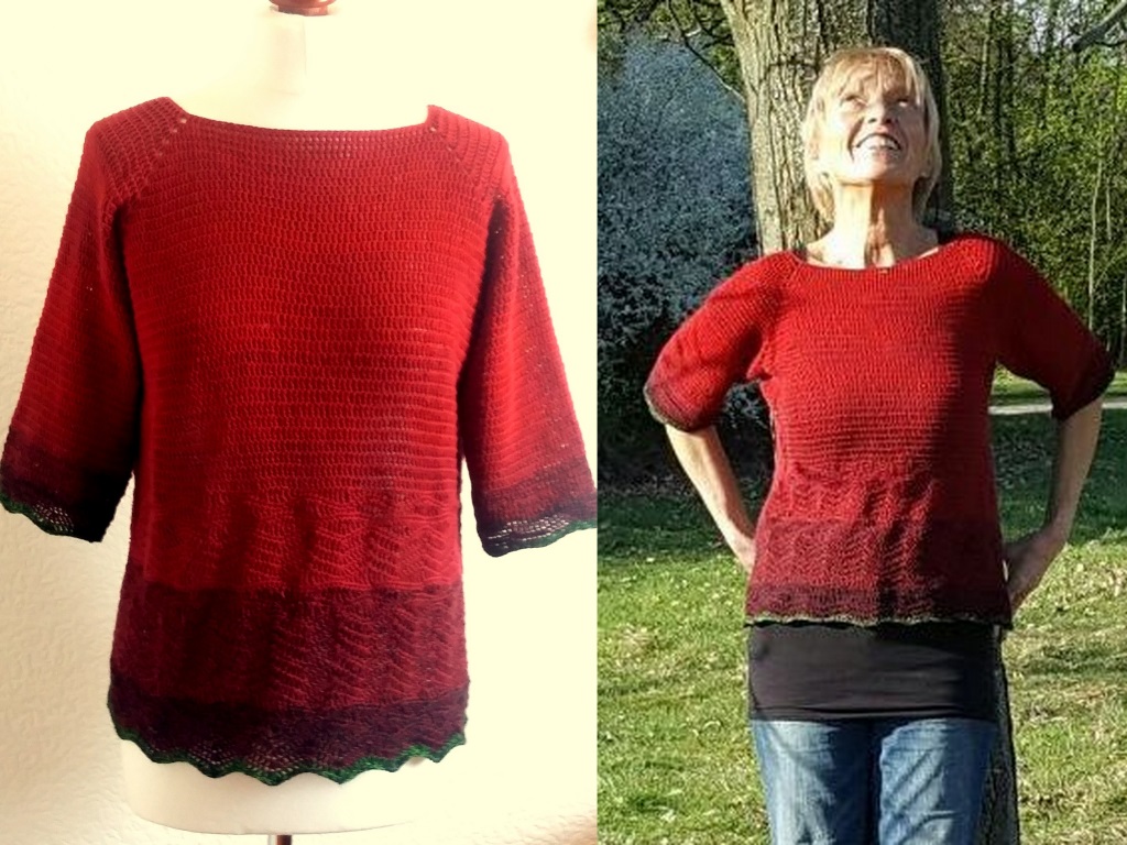 Euch.Der Pullover wird in Runden von oben nach unten gehäkelt.Er lässt sich sehr leicht auf alle Größen anpassen.