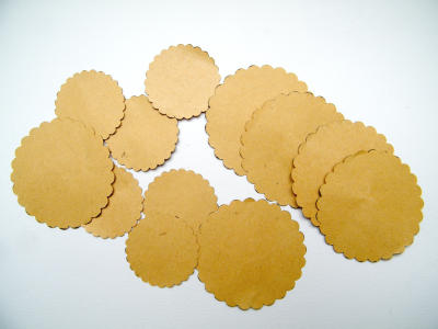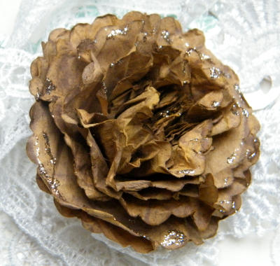 Ich hätte auch noch ein Beispiel für Upcycling aus meiner früheren Bastelzeit. Aus altem Packpapier habe ich Blüten gebastelt. Dazu werden mit einem Stanzer Kreise in 2 Größen ausgestanzt, diese dann zerknüllt und die Knitter mit Stempelfarbe bearbeitet. Dann werden sie wieder glattgebügelt und zu einer Blüte aufgetürmt. Hier mal ein paar Fotos davon: