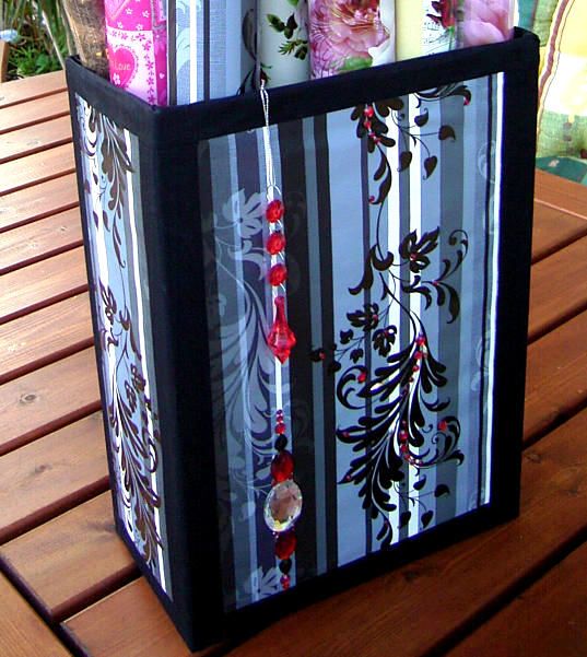 Aller guter Dinge sind drei ... deshalb noch eine Idee. Ich habe einen Waschmittelkarton mit Geschenkpapier beklebt. Alle Kanten und der obere