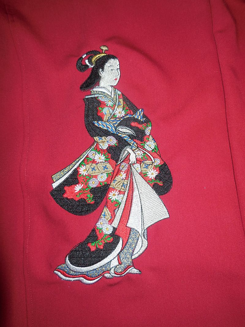 Mit der maschine ist das eine meiner Aufwändigsten Arbeiten, sowas könnte ich nie von Hand sticken, habs ja schonmalö gezeigt meine Geisha