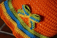 Material: ca 25-40 gr Baby Smiles Cotton Schachenmayr (92m/ 25gr), Nadelspiel 3 mm, Häkelnadel 2,5 mm, Satinband.
