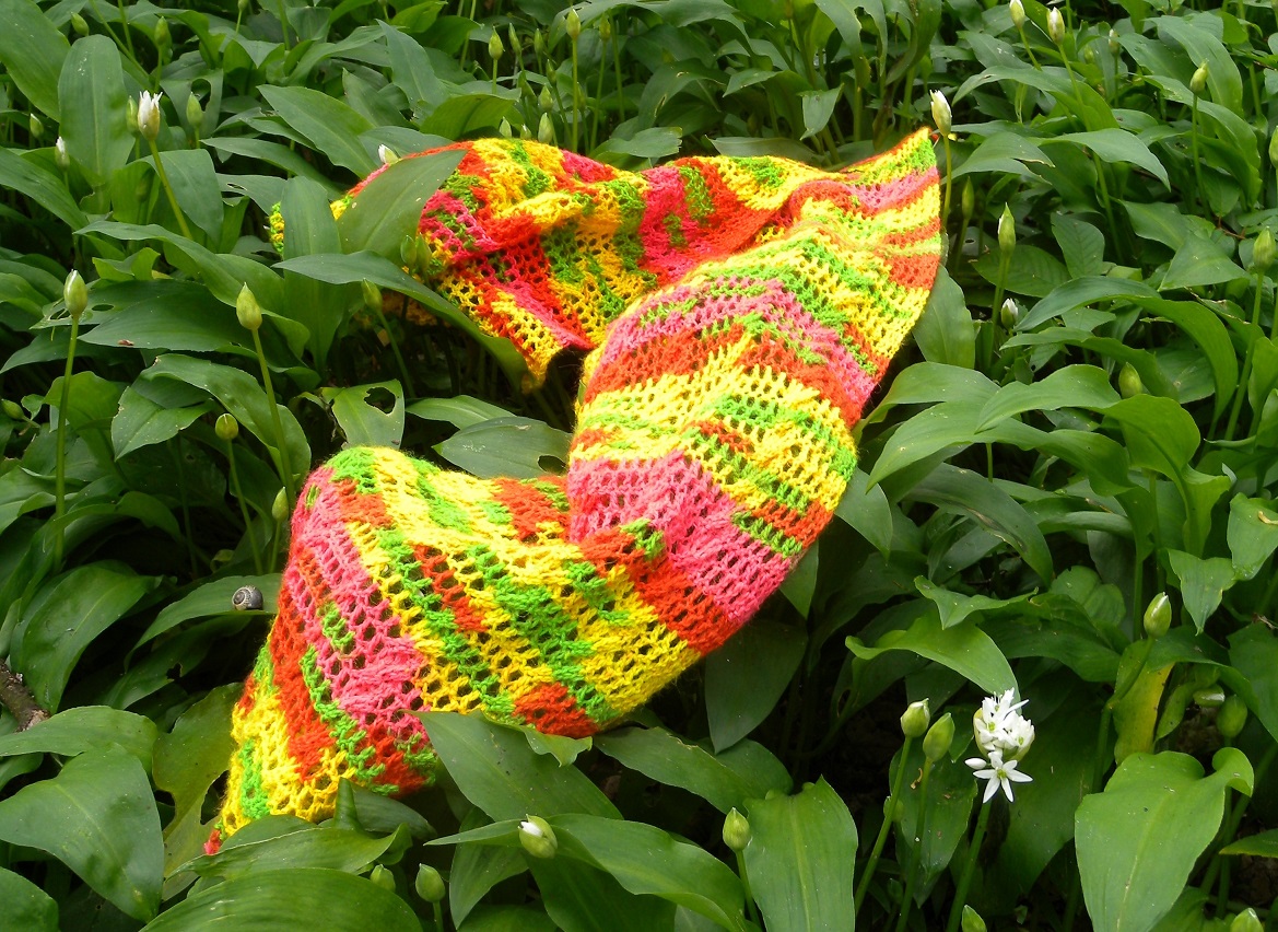 Fröhlich bunt – in Wunschfarben (ggf. auch Resteverwertung) ist dieses Dreieckstuch in wenigen Abenden schnell gehäkelt – sehr entspannend..