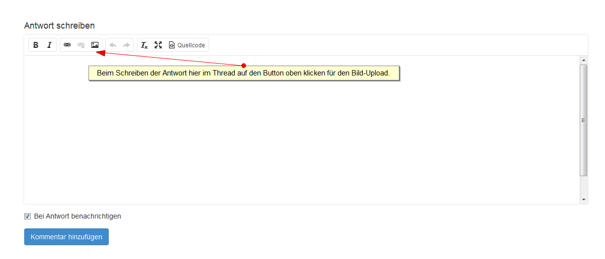 Es öffnet sich dann ein kleines Fenster, dort wird oben "Bild-Info", "Link" und "Hochladen" angezeigt.