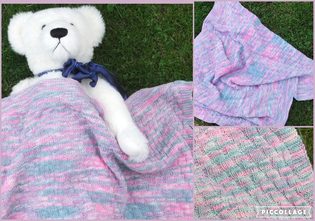 Die Babydecke Lina ist aus einem einfachen verschobenen Schachbrettmuster gestrickt. Es sind nur Kenntnisse von rechten und linken Maschen erforderlich.