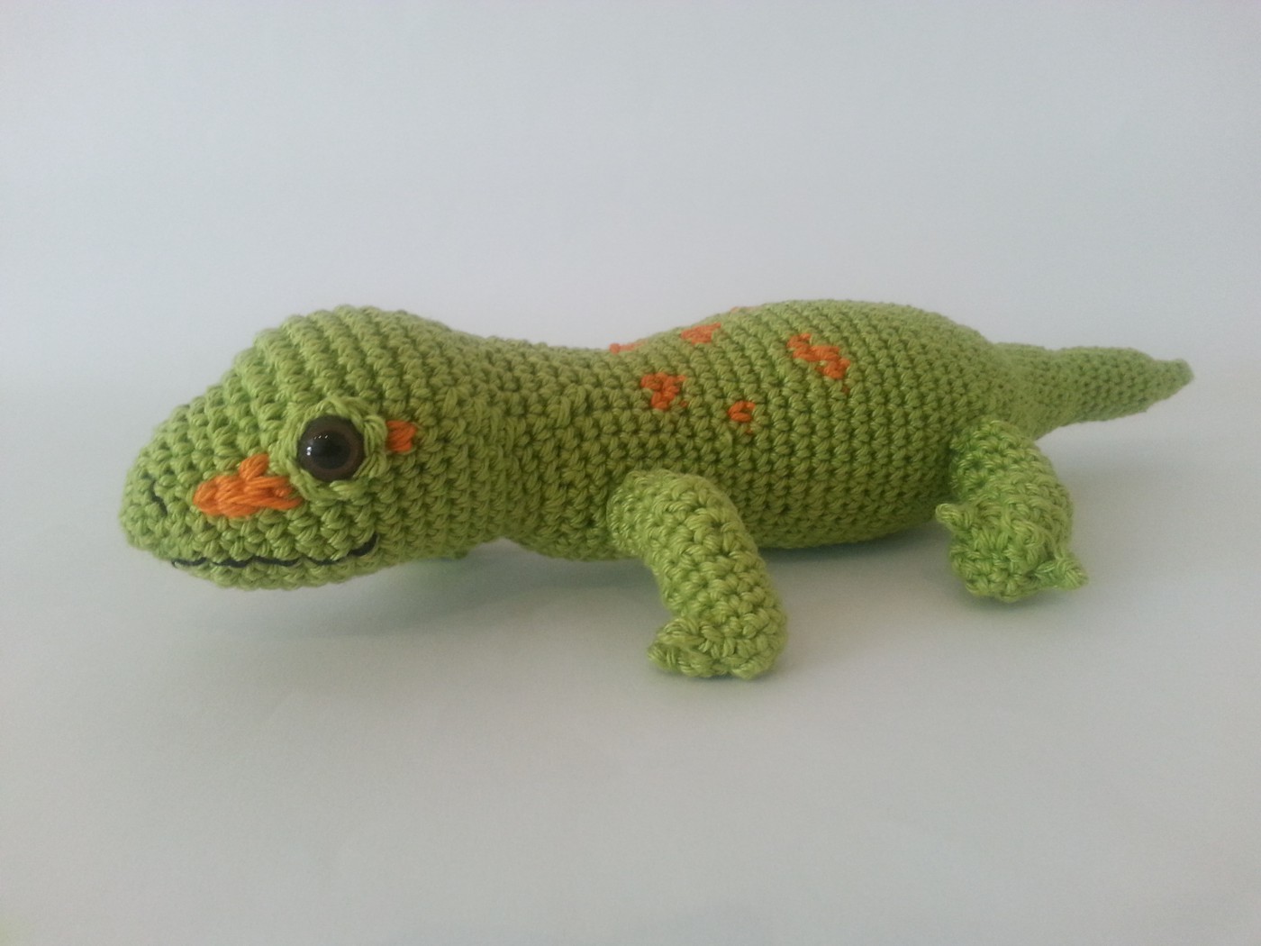 Gary ist ein niedlicher, kleiner Gecko - garantiert pflegeleicht und stubenrein. Gecko Gary wird, unter Verwendung des angegebenen Materials, 25 cm lang. Ich persönlich empfehle für das Nacharbeiten all meiner Kuscheltiere und Amigurumis Baumwollgarn. Die Anleitung enthält viele Schritt-für-Schritt-Fotos, die das Nacharbeiten leichter machen. Grundkenntnisse im Häkeln (feste Maschen, Spiralrunden etc.) werden jedoch vorausgesetzt.